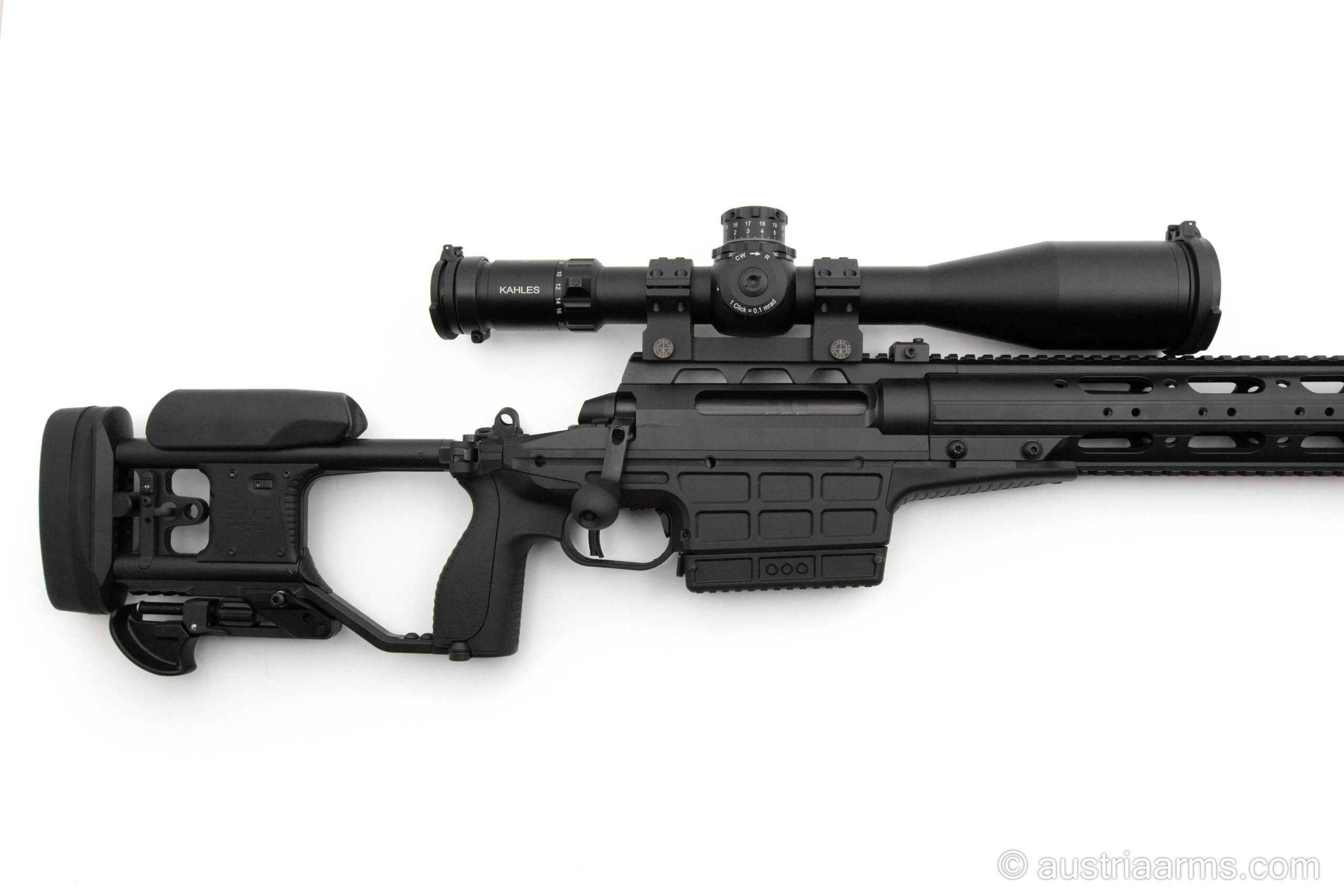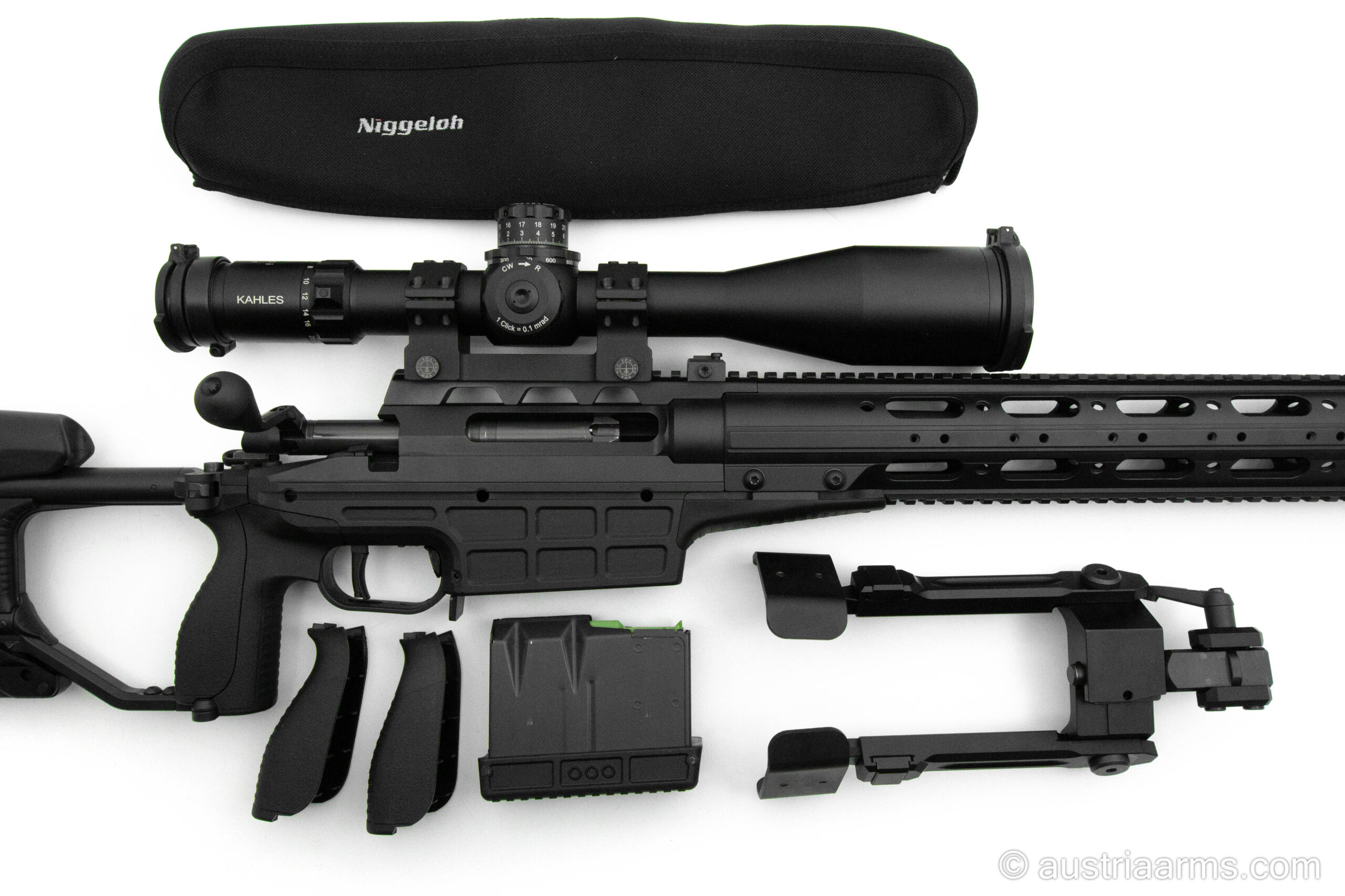 Die vorliegende Waffe ist im Set mit einem Kahles K624i 6-24×56 samt ERA Tac Montage und einem Fortmeier Zweibein ausgestattet.