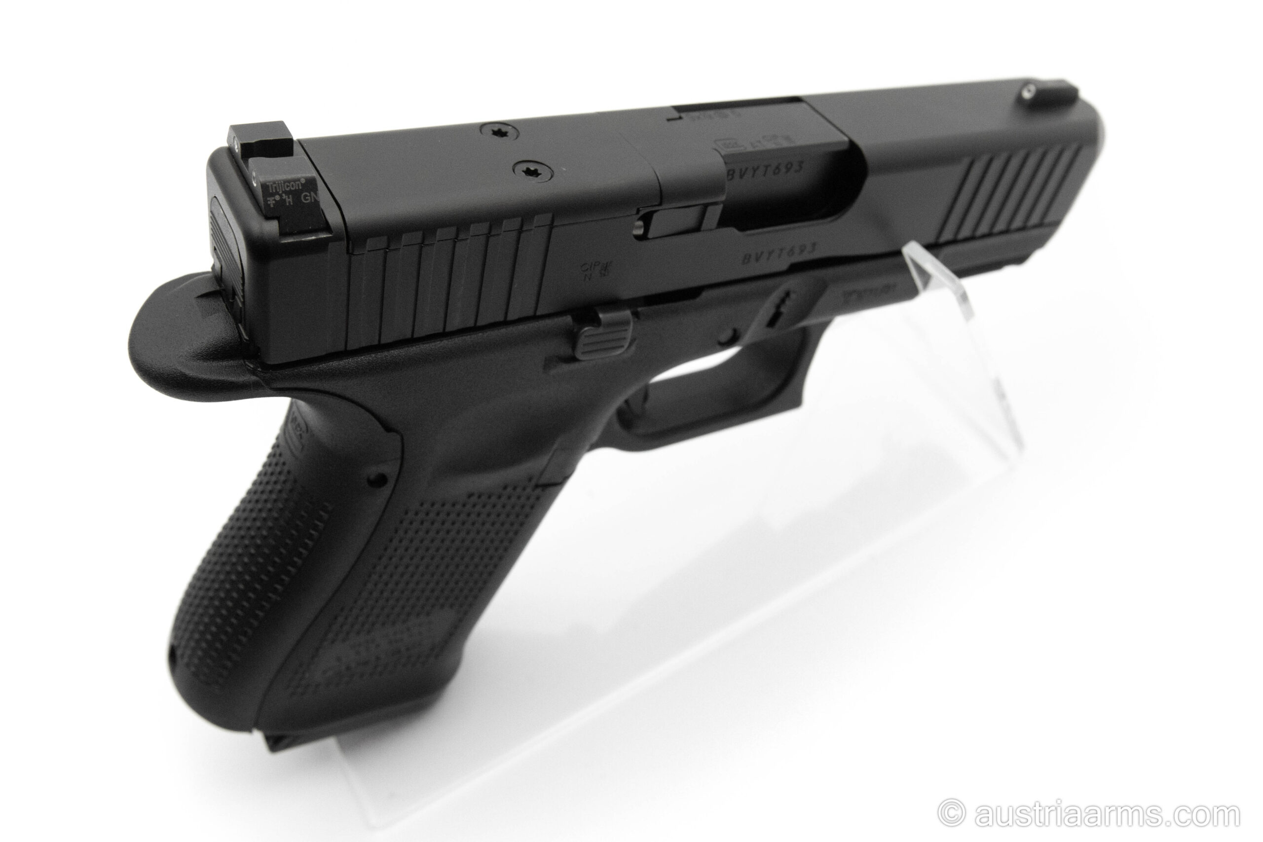 Mit ihrem kompakten Format vereint die Glock 19 Gen5 MOS hohe Magazinkapazität, hervorragende Präzision und maximale Zuverlässigkeit. Ob auf dem Schießstand, im sportlichen Einsatz oder für professionelle Anwendungen – diese Pistole steht für die legendäre Glock-Qualität „Made in Austria“.