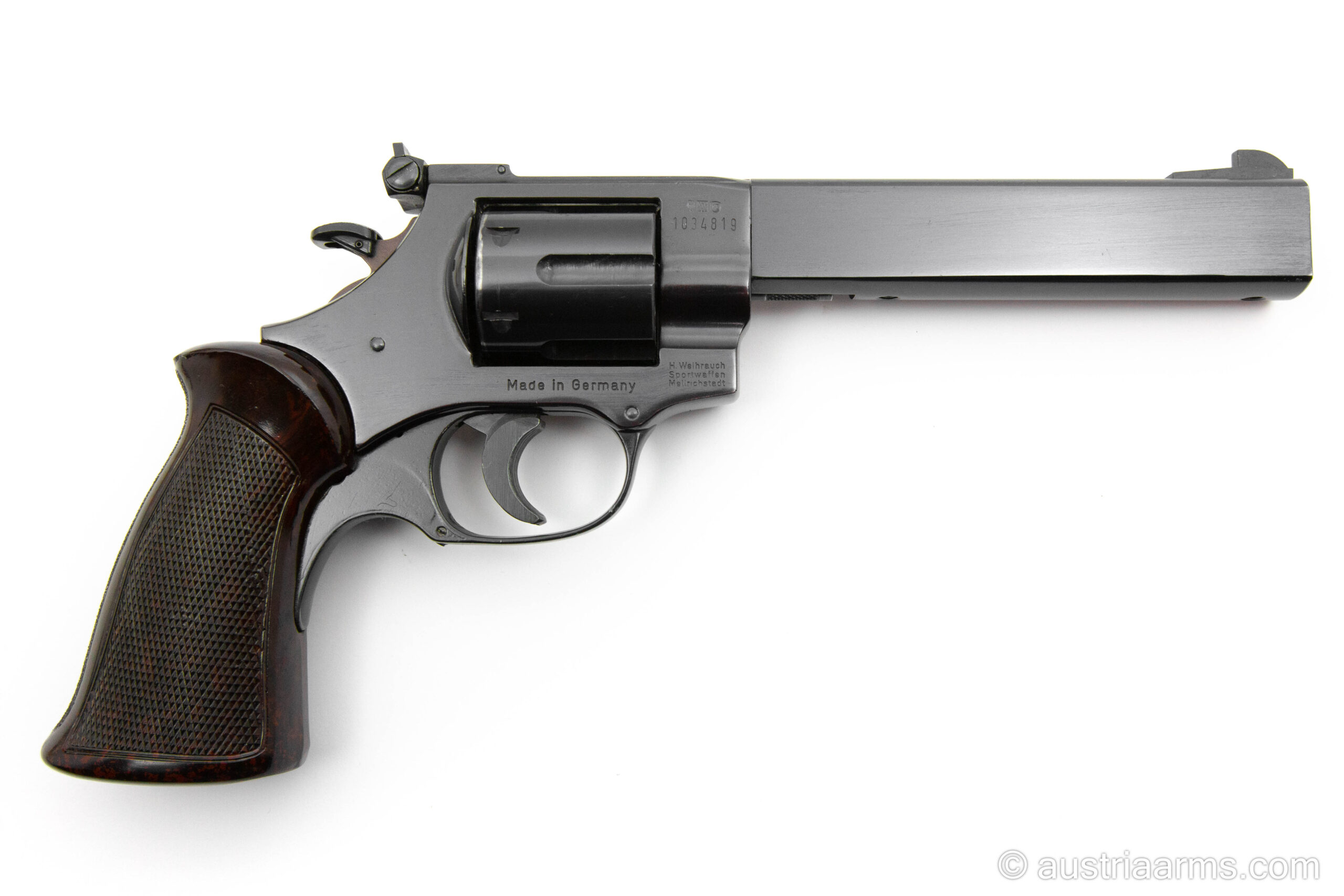 Neuwertiger Sportrevolver des bekannten deutschen Herstellers Weihrauch Sportwaffen Mellrichstadt. Solider Stahlrahmen, 6 Zoll Lauflänge, verstellbares Matchvisier, Sportabzug. Erstklassiges Preis /Leistungsverhältnis, ideale Einsteigerwaffe für Hobby- und Sportschützen.