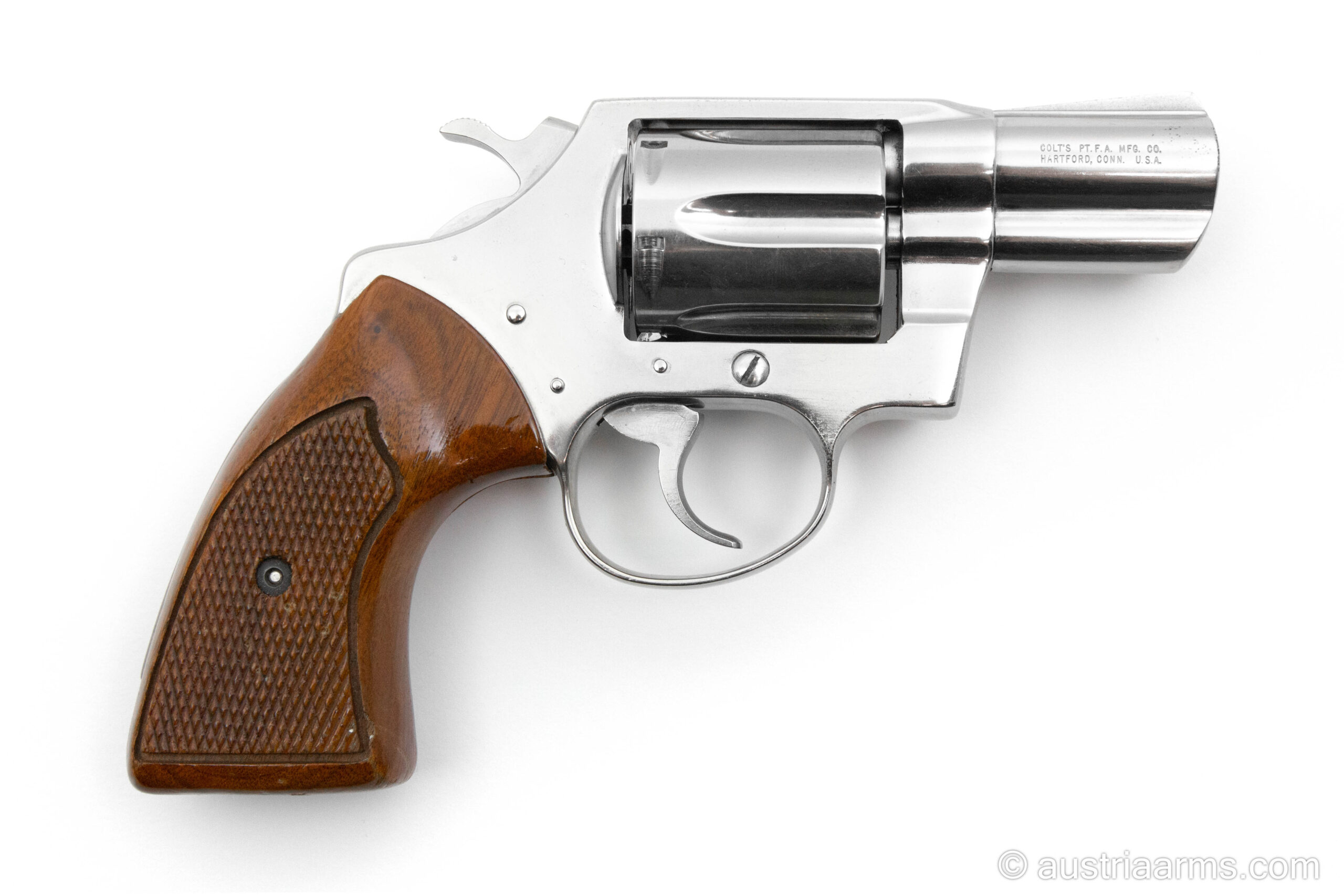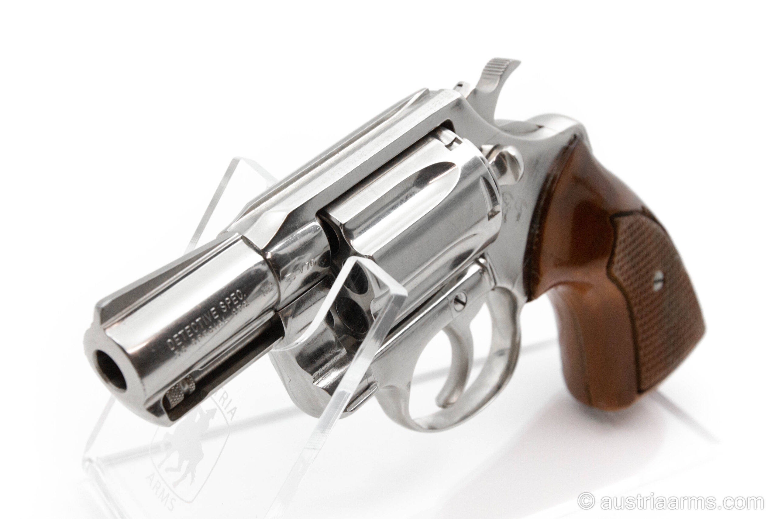 Leider sind sie schon fast verschwunden. Ganz selten kommen alte Colt Detective Special Revolver herein, noch seltener sind sie im Topzustand wie das vorliegende Exemplar. Ganz besonders selten sind sie in vernickeltem Finish. Das Trommeltiming alter Colt-Revolver ist gänzlich spielfrei, die Flucht der .38er Geschosse von der 6-Schuss Trommel in den Lauf perfekt.