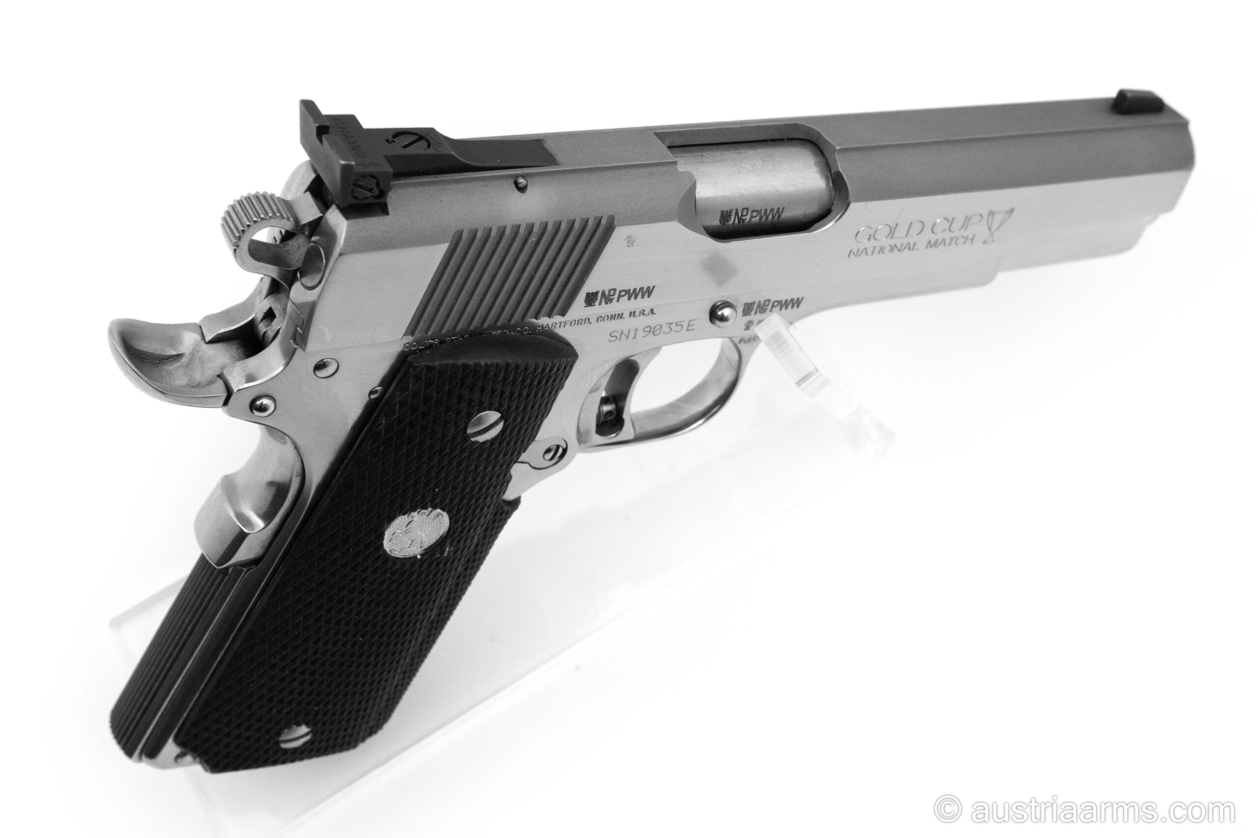 Die Gold Cup National Match wurde speziell für Wettkampf- und Präzisionsschützen konzipiert. Ihr fein abgestimmtes Abzugssystem, die hochwertige Laufverarbeitung sowie die exzellente Passgenauigkeit sorgen für eine herausragende Schussleistung. Das bewährte Series-80-System bietet zusätzliche Schlagbolzensicherung und erhöht damit die Sicherheit im Handling.