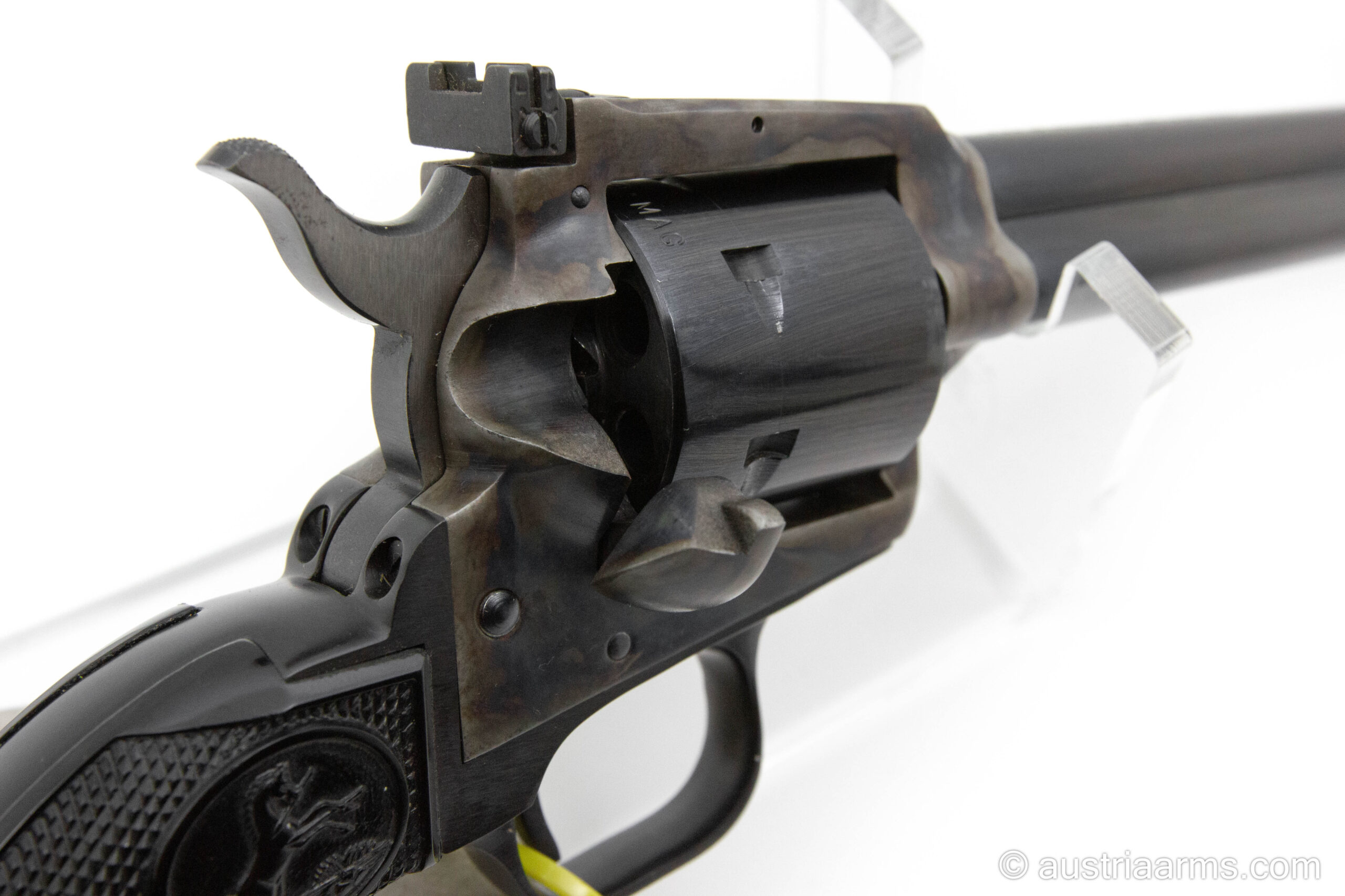 Das Modell „New Frontier“ verfügt über eine verstellbare Visierung, die eine exakte Anpassung an unterschiedliche Distanzen erlaubt. Die hochwertige Oberflächenverarbeitung sowie die fein gearbeiteten Griffschalen unterstreichen den exklusiven Charakter dieses Revolvers.