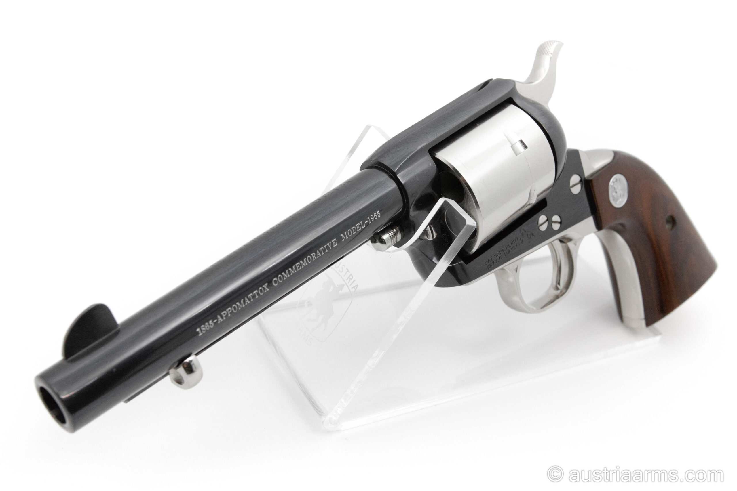 Der Colt Single Action Army Appomattox Commemorative Revolver von 1965 im Kaliber .45 Long Colt ist ein begehrtes Sammlerstück für Liebhaber klassischer US-Feuerwaffen. Dieses limitierte Sondermodell wurde zur Erinnerung an das Ende des Amerikanischen Bürgerkriegs und die Kapitulation bei Appomattox (1865) aufgelegt und verbindet historische Bedeutung mit der legendären Qualität von Colt.
