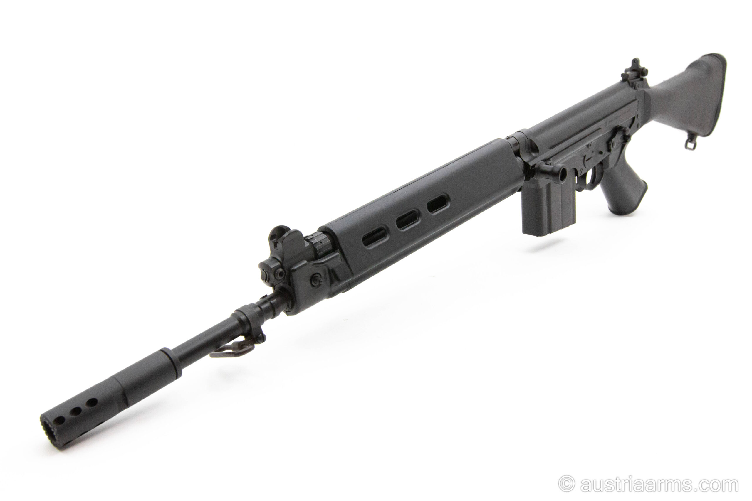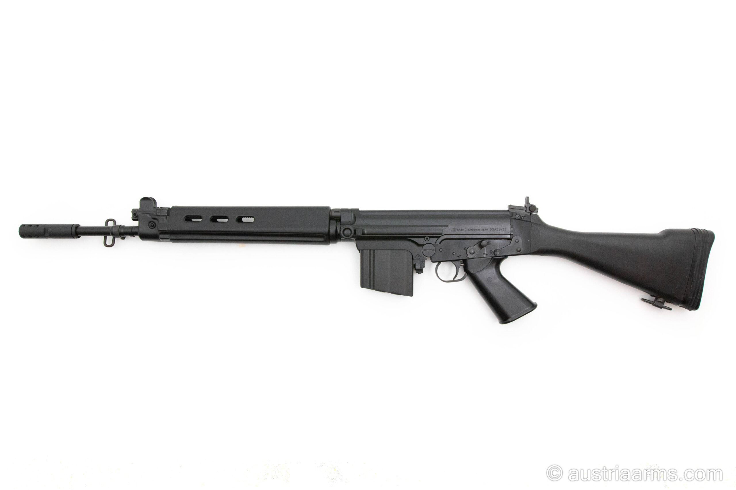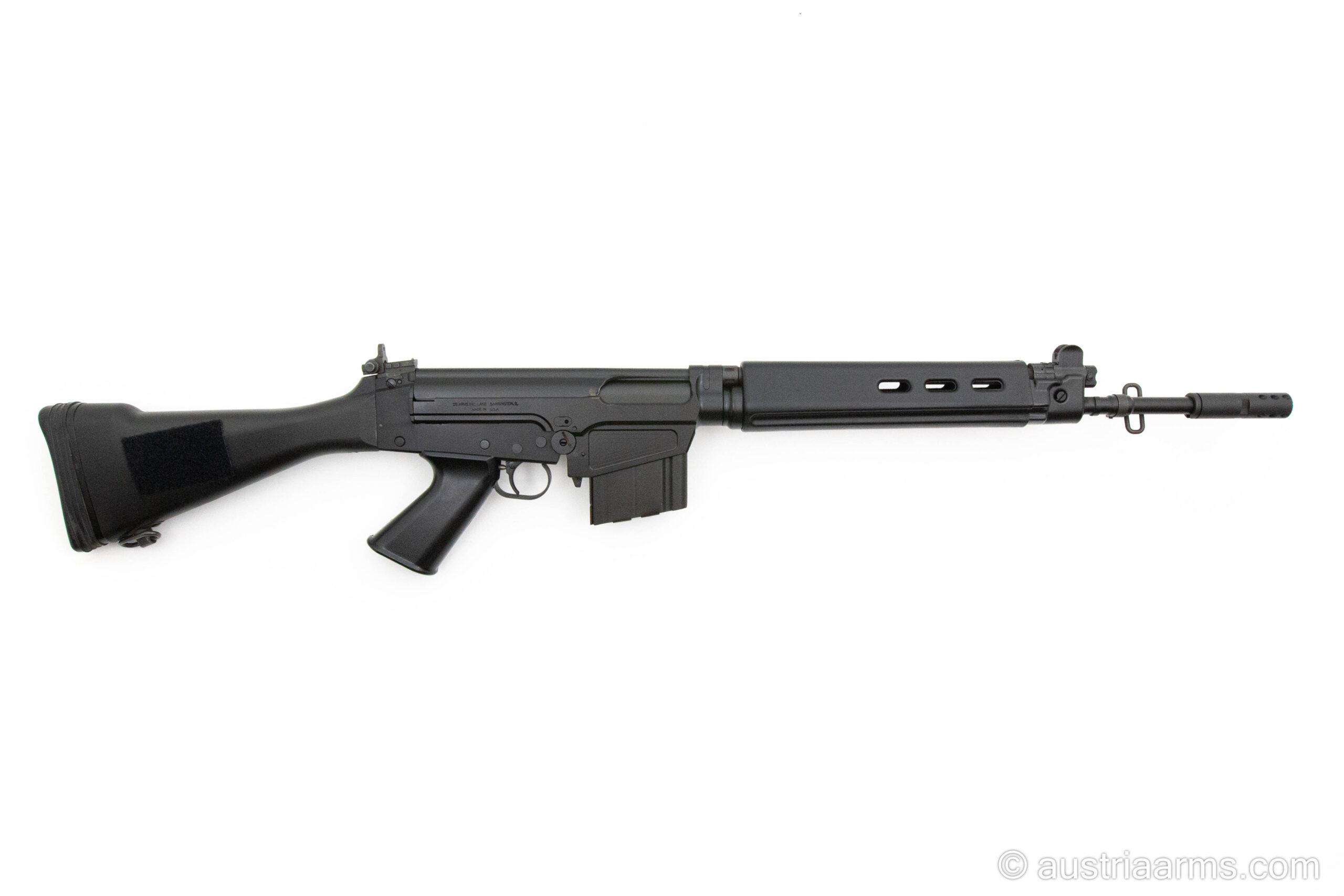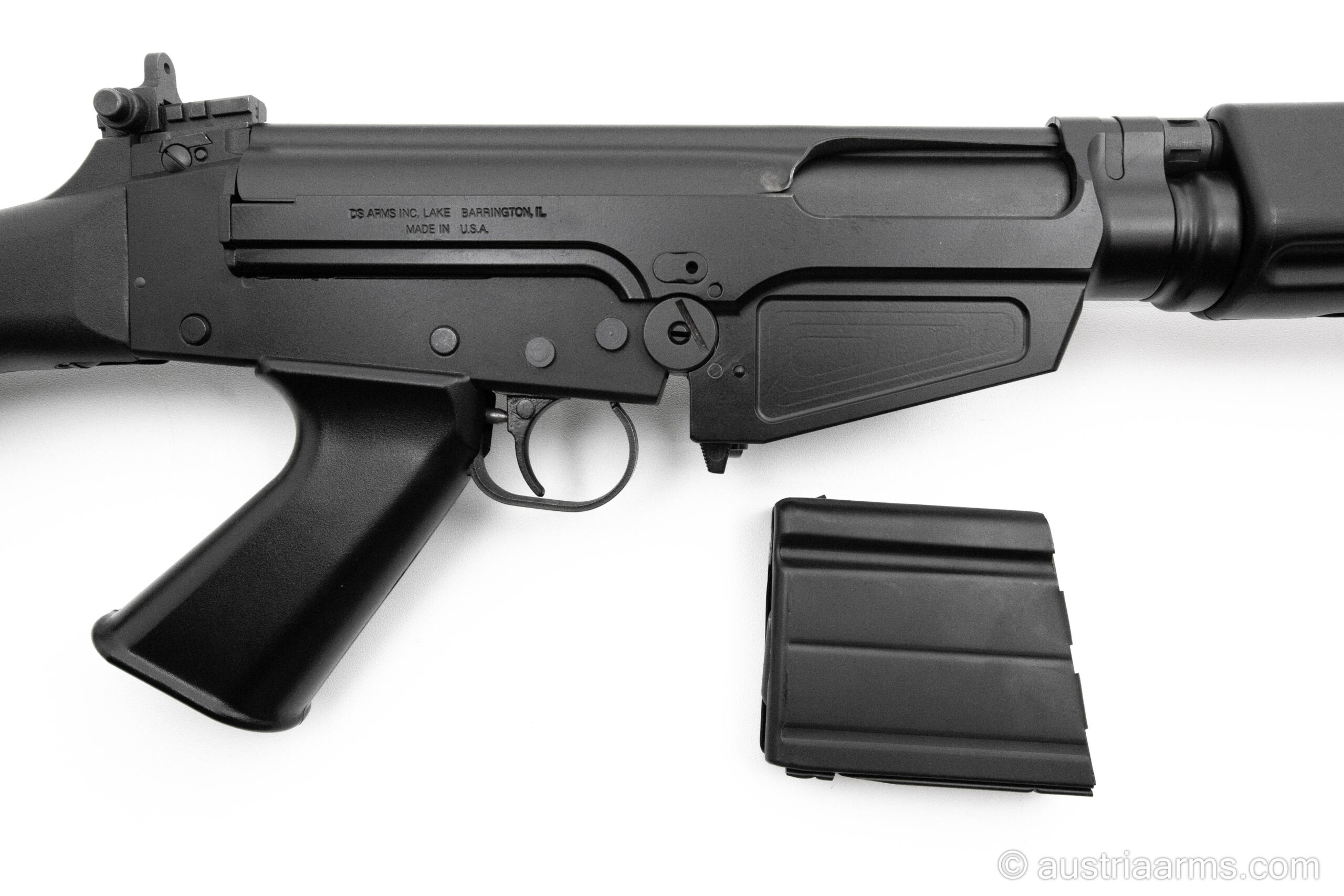 Kompaktes, halbautomatisches Selbstladegewehr des amerikanischen Premiumherstellers DS Arms auf Basis des STG58 / FN FAL. Lauflänge 16.5 Zoll. Schwere, solide Bauweise aus Stahl. Magazinkapazität 10 Patronen, Kaliber .308 Win.