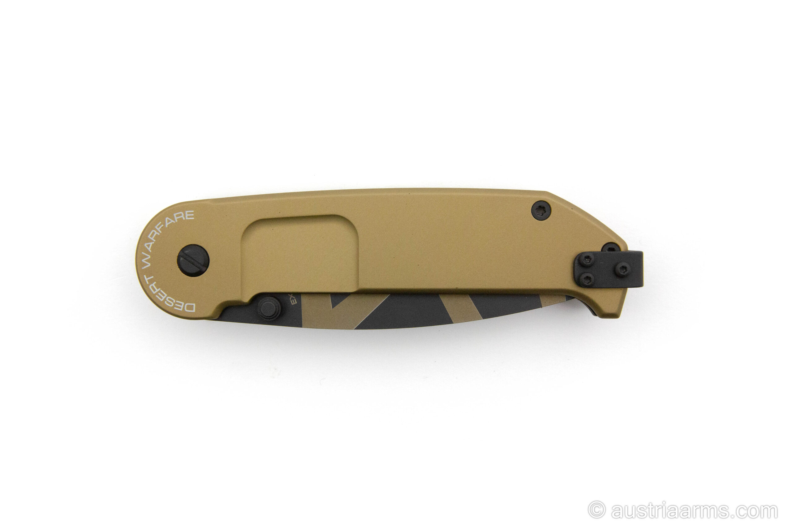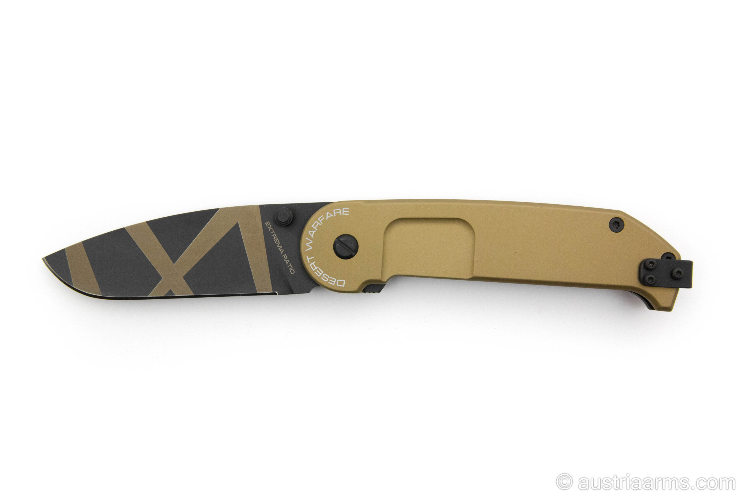 Das Extrema Ratio BF2 CD Desert Warfare ist ein robustes, taktisches Full-Size Klappmesser, das speziell für militärische, polizeiliche und professionelle Einsätze sowie anspruchsvolle EDC-Aufgaben entwickelt wurde. Die flach geschliffene Drop-Point-Klinge aus Böhler N690 Stahl bietet eine ideale Balance zwischen Härte, Zähigkeit und Schnitthaltigkeit, während die Desert-Warfare-Oberfläche und der sandfarbene Griff eine dezente, geländetaugliche Optik erzeugen.