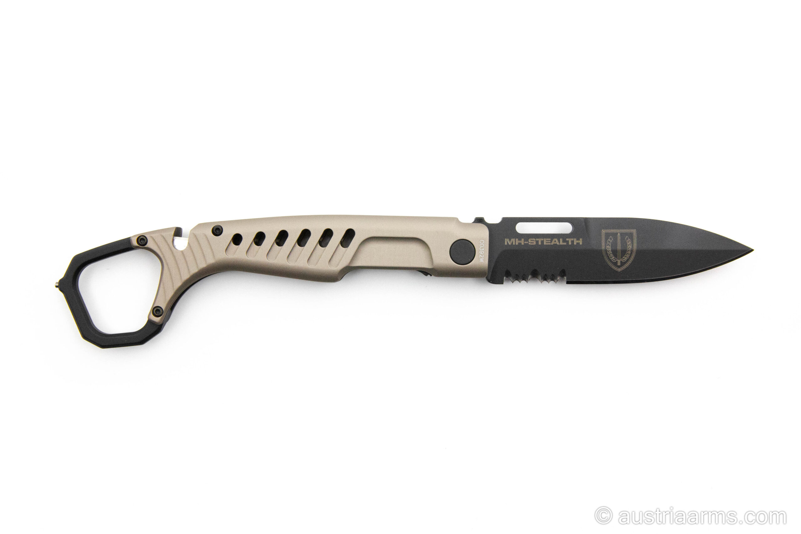 Dank des integrierten Hartmetall-Glasbrechers im hinteren Ring sowie eines Sicherheitsgurtschneiders im Griff ist das MH-Stealth ideal für Einsatz, Rettung und Alltag. Durch den eingebauten Ring sowie das geringe Gewicht bietet dieses Messer maximale Kontrolle und schnelle Einsatzbereitschaft – es verbindet die Vorteile von feststehenden Messern mit der Kompaktheit eines Klappmessers.