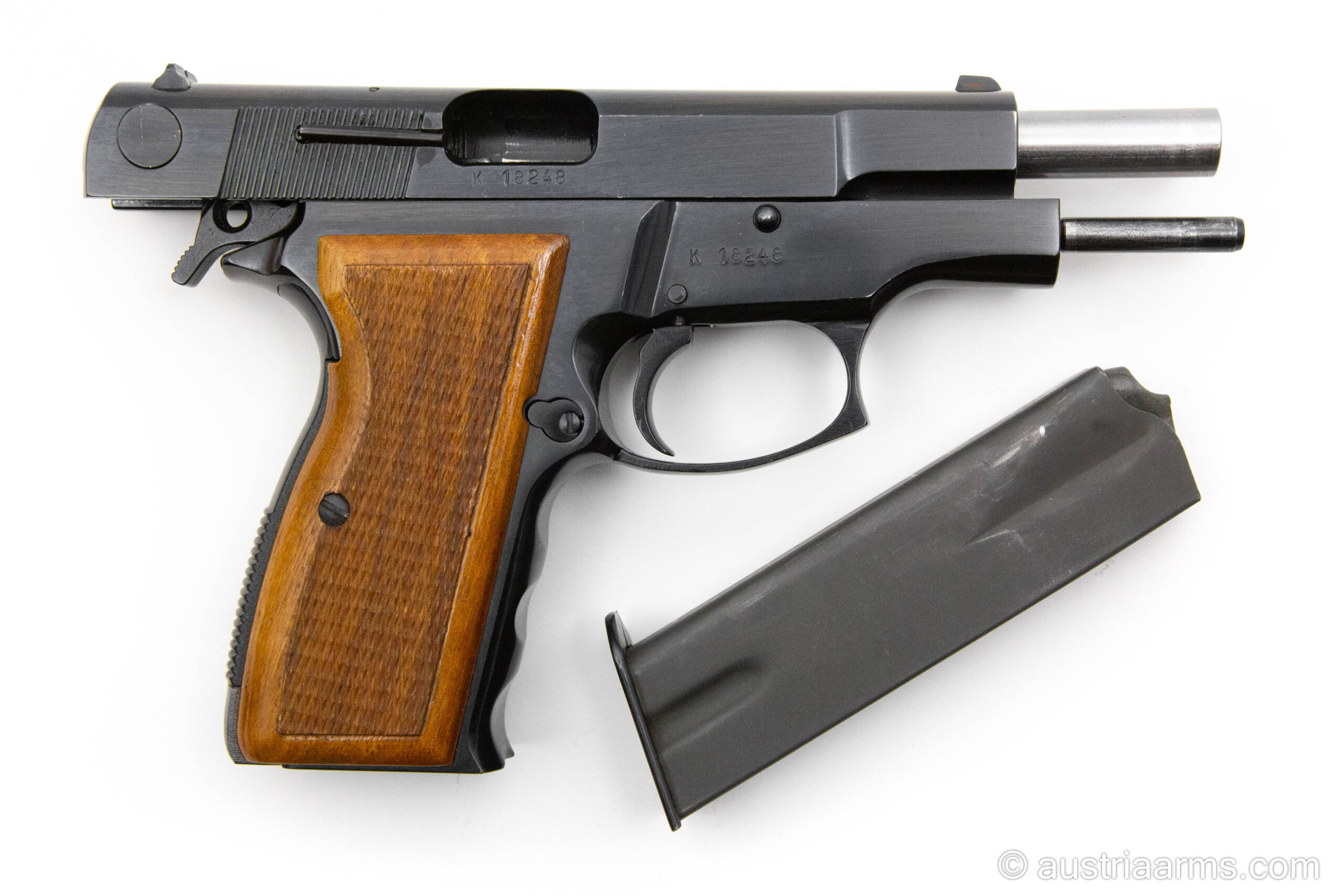 Hochwertig verarbeitete 9 mm Para Pistole mit Stahlgriffstück, 15 Patronen Magazinkapazität, Spannabzug. Gelegenheit!