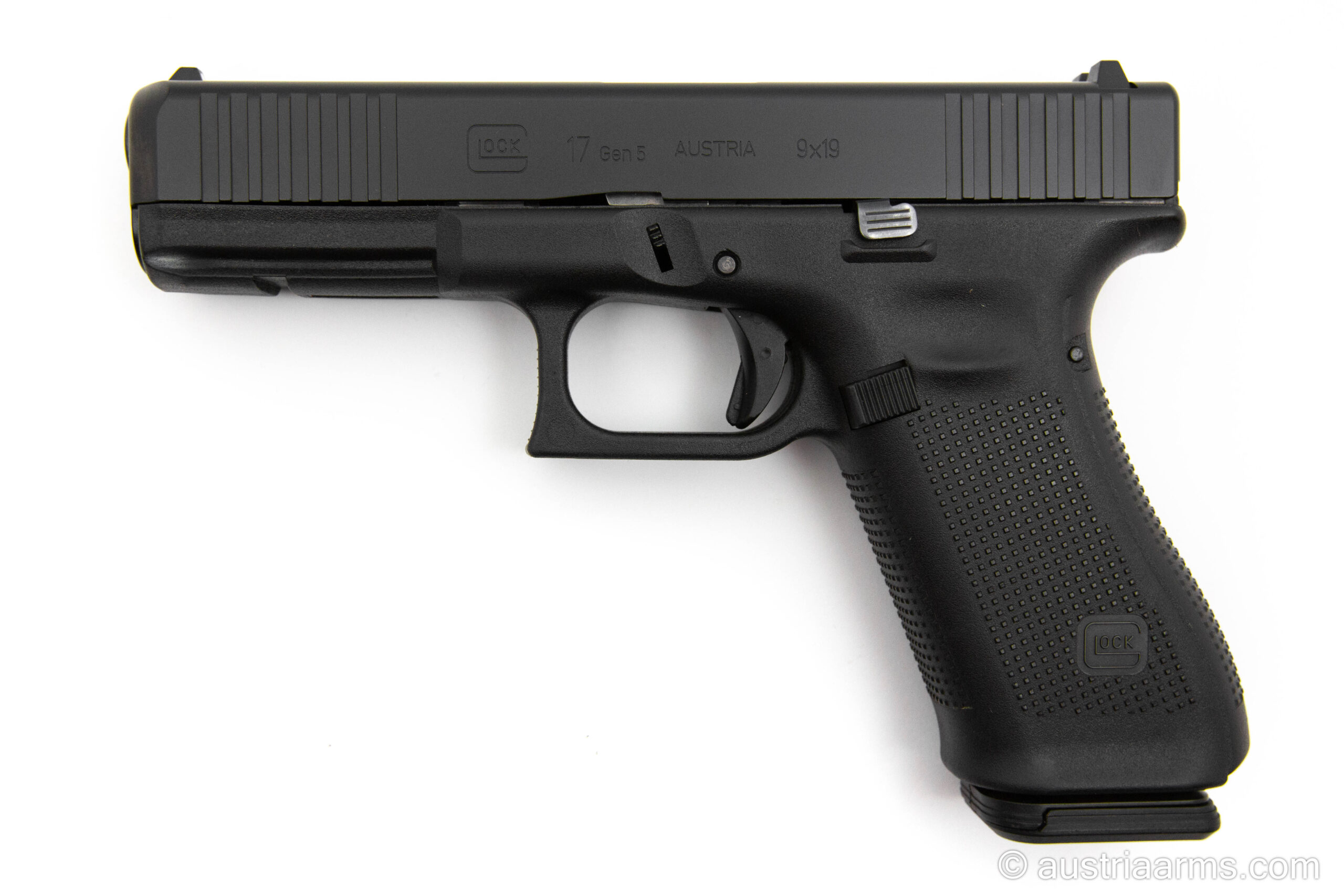 Die neue Generation 5 der klassischen Glock 17 wurde in vielen Bereichen nochmals verbessert. Die gelernte Handhabung bleibt. Die Standardwaffe der Exekutive und des Militärs, sie ist die meistverkaufte Pistole der Welt. 17 Patronen Magazinkapazität, Kaliber 9 x 19 mm.