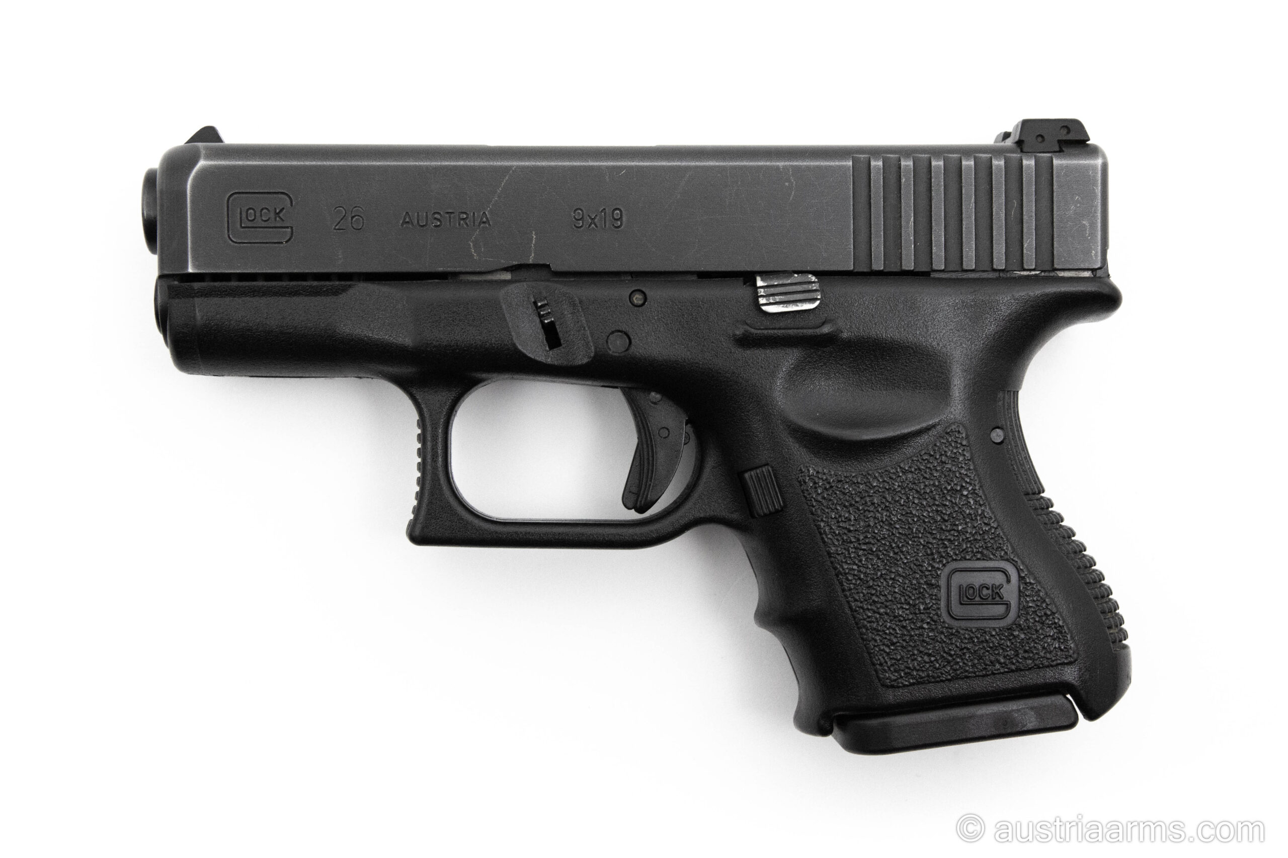 Gepflegte Glock 26 Generation 3 in sehr schönem Zustand, inklusive ein Reservemagazin (10 Patronen).