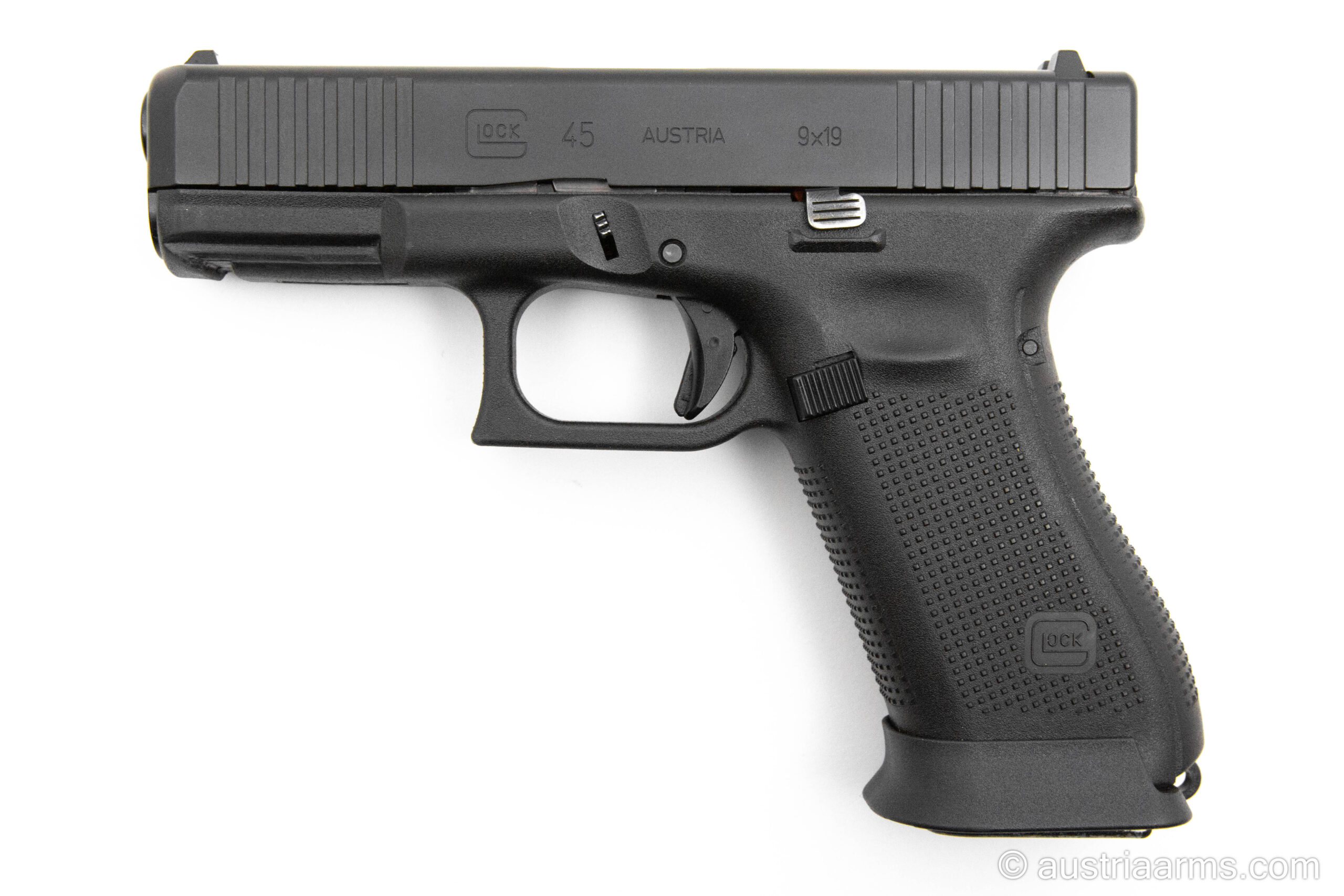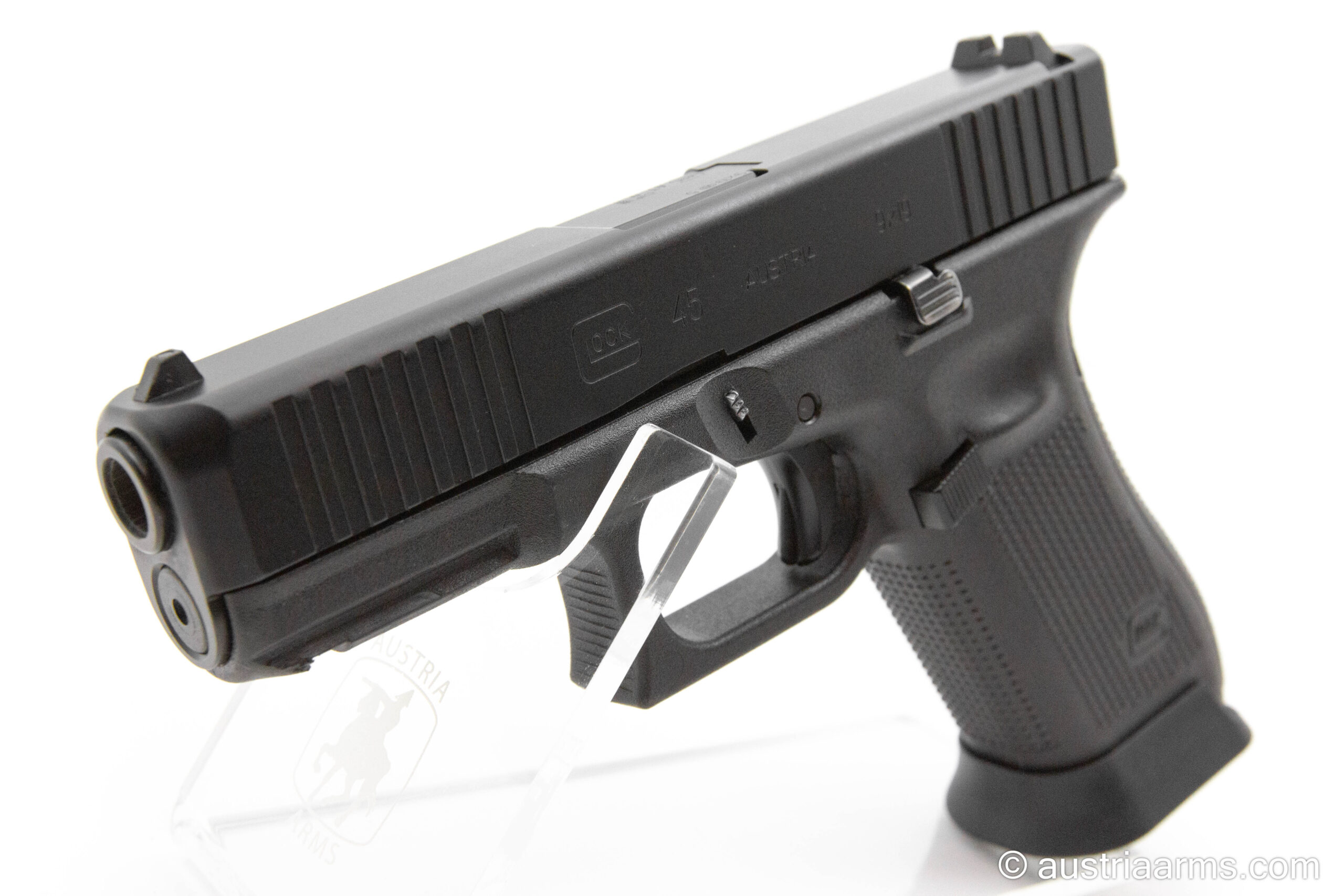 Gelegenheit: hier ist eine neuwertige Glock 45 MOS – aktueller Produktionsstand – im Set mit Originalbox, ein Reservemagazin, Ladehilfe und Griffrücken zu haben. Diese waffe ist zusätzlich mit dem originalen Glock Magazintrichter (Jet Funnel) ausgestattet.