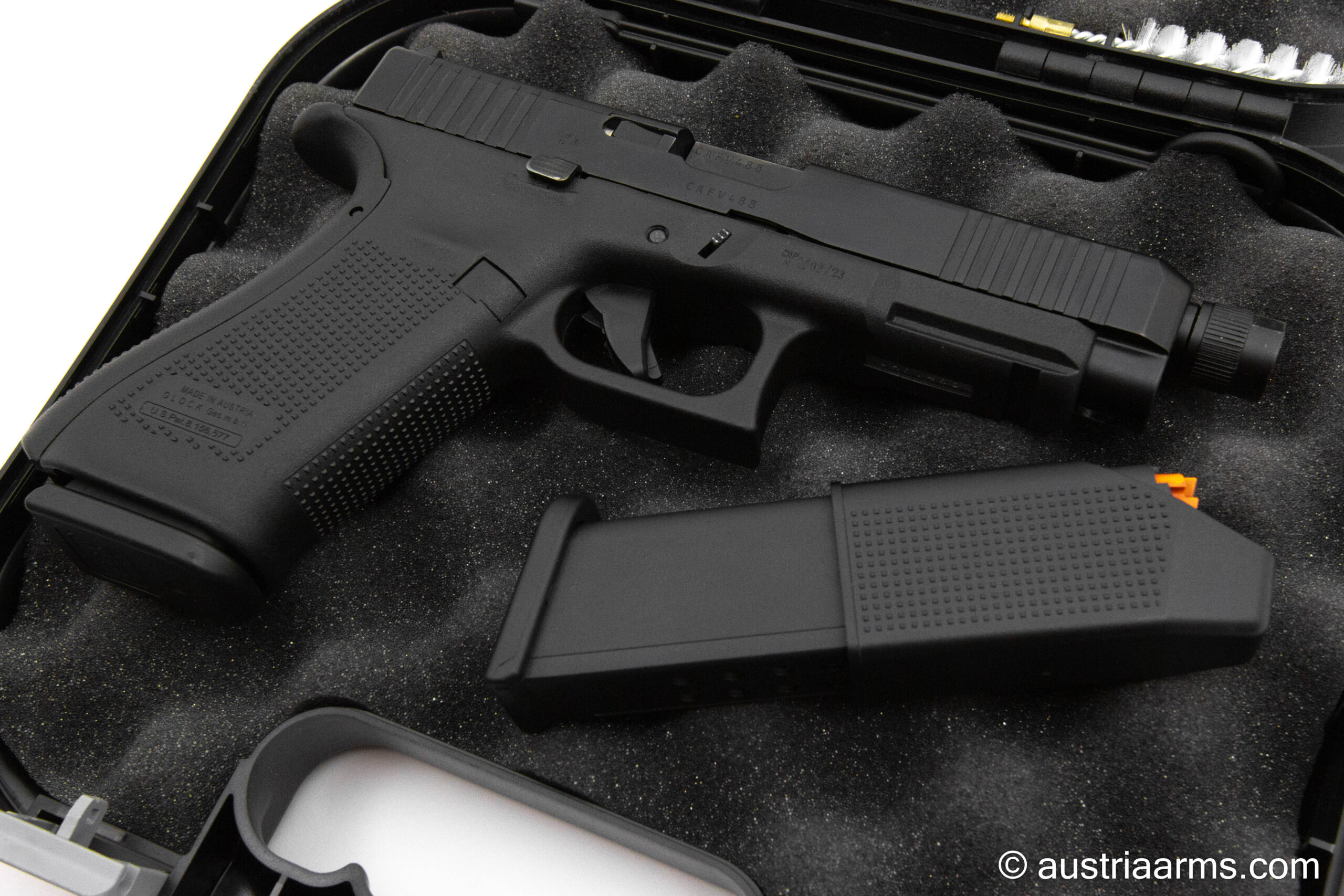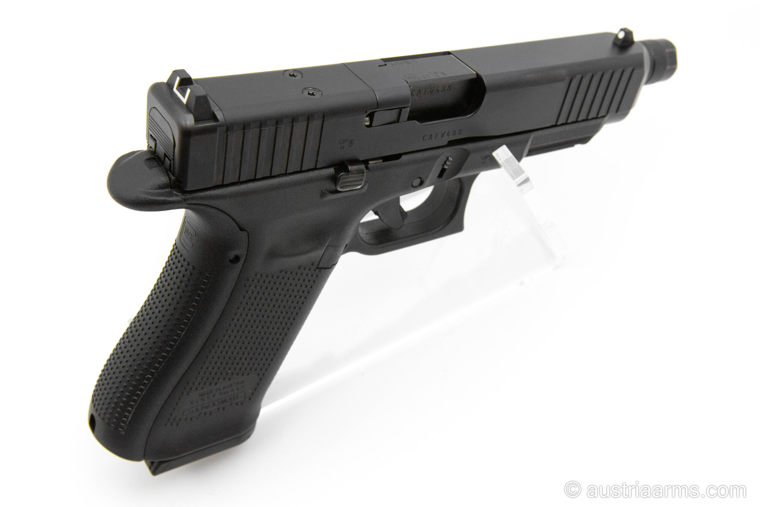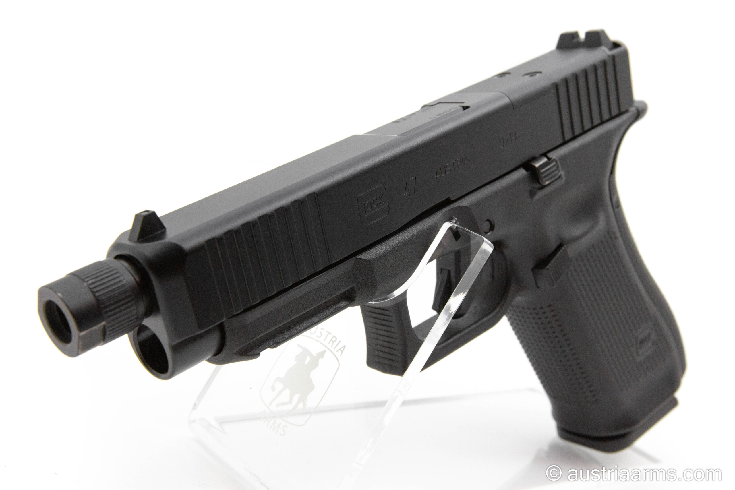 Gelegenheit – diese Glock 47 ist mit einer MOS Schnittstelle zur Aufnahme einer Reddot Optik, einem original Glock Performance Trigger und einem Gewindelauf M13.5 x 1 links ausgestattet.