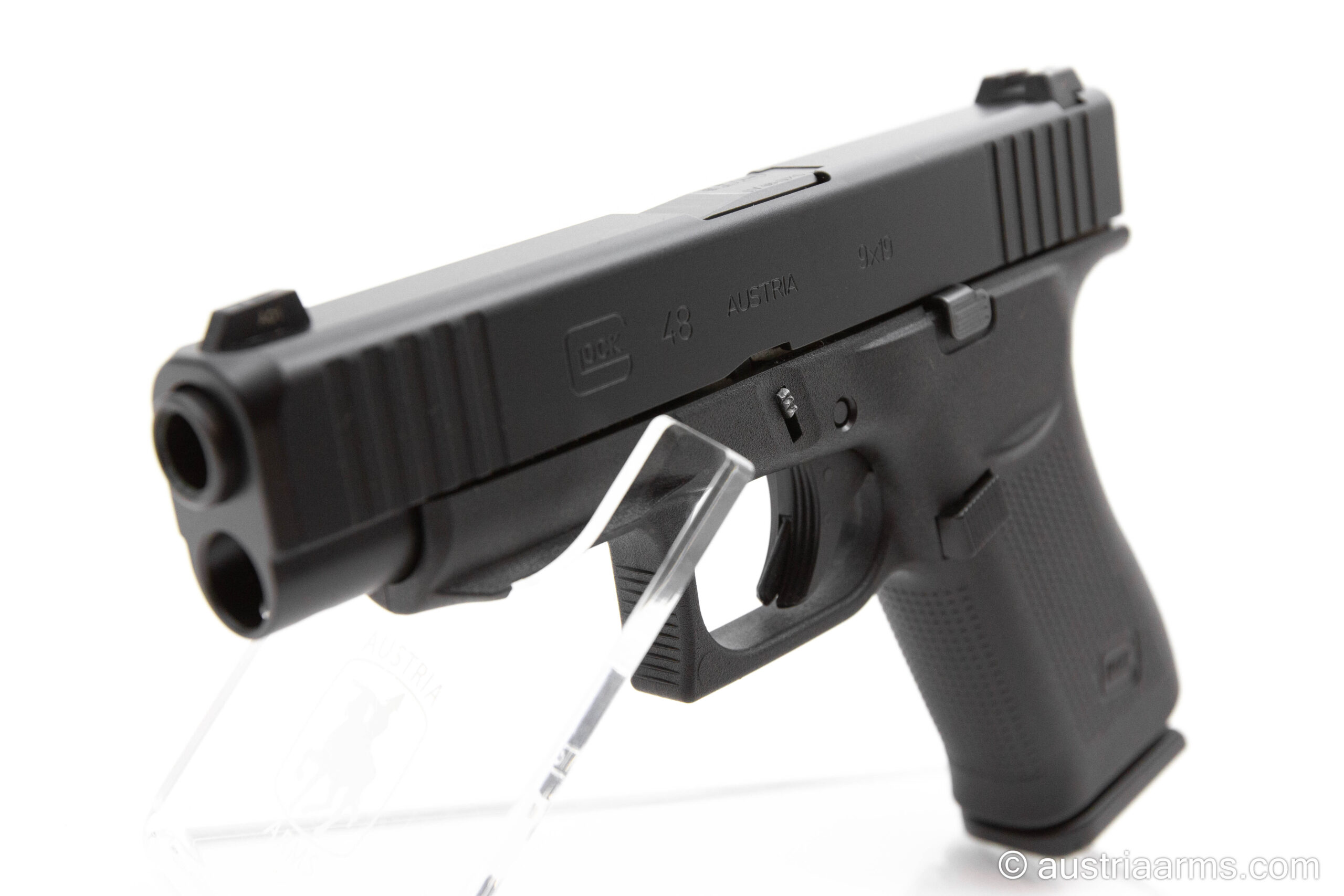 Neuwertige Glock 48, ca. 100 Patronen geschossen. Komplett ausgestattet mit Insideholster für Rechtshänder, einem Reservemagazin und selbstleuchtendem Tritiumvisier.
