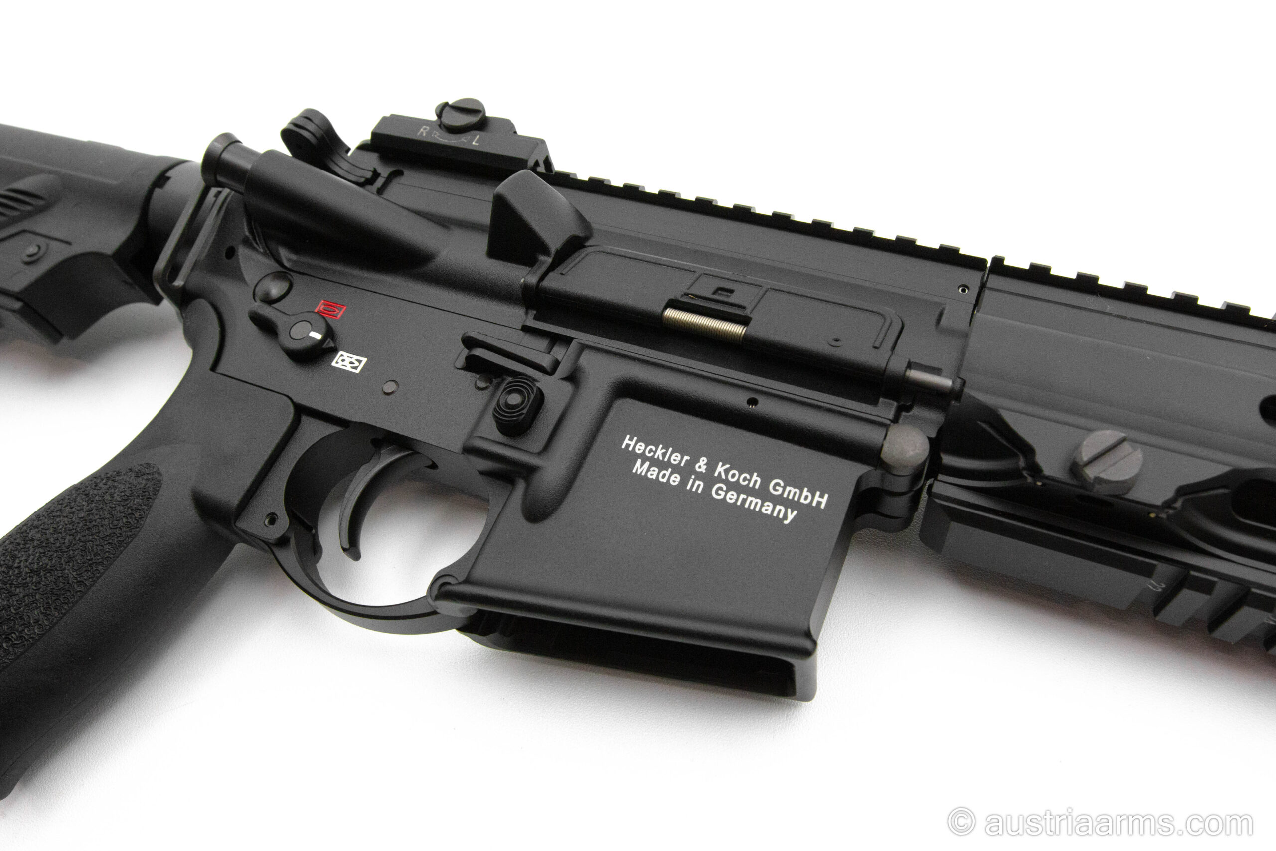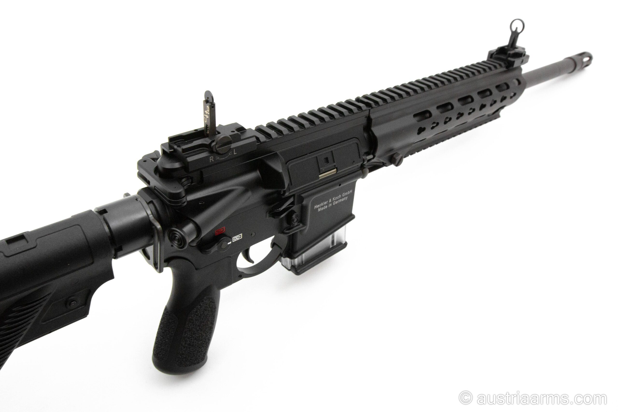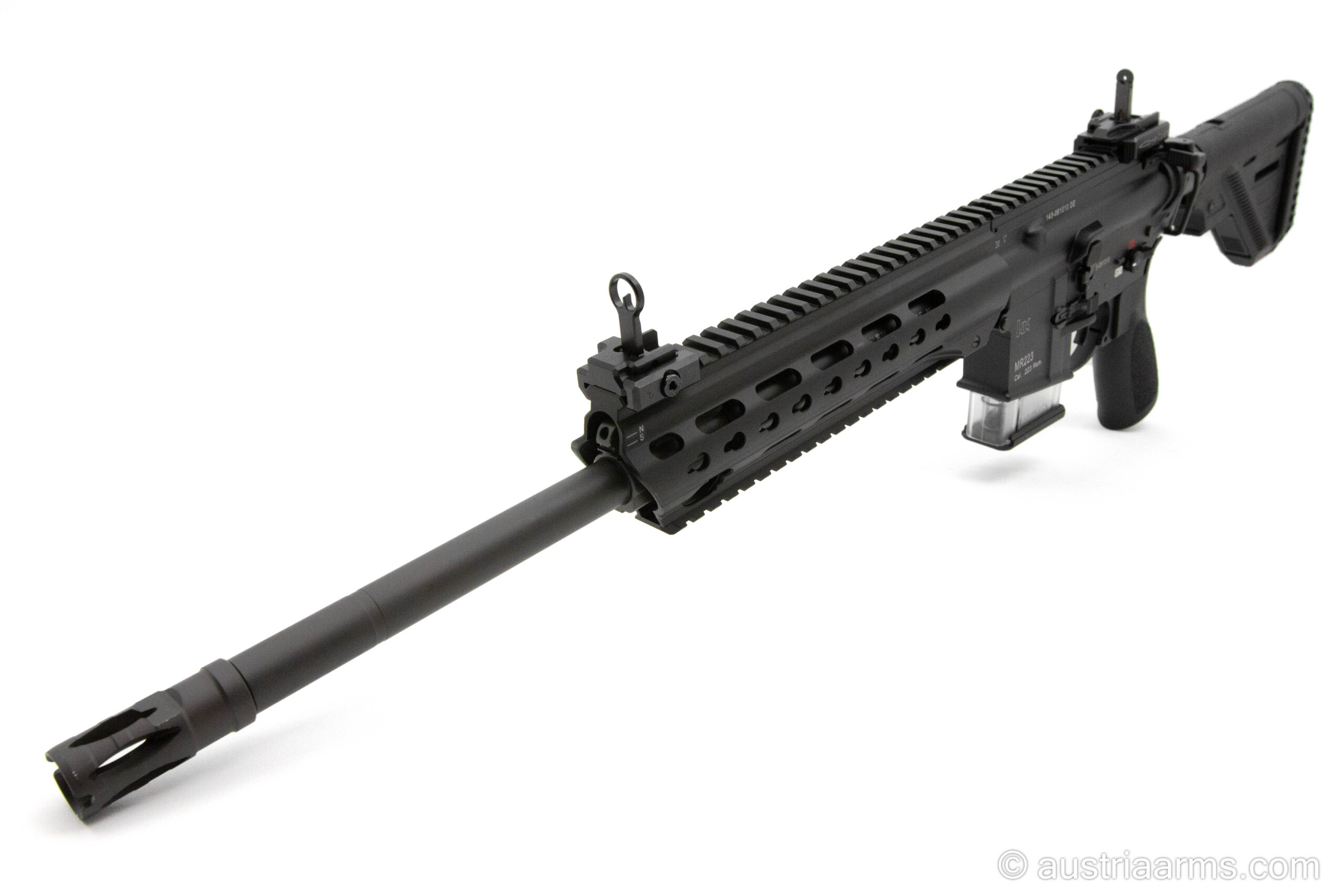 Das MR223 ist ein halbautomatisches Selbstladegewehr im Kaliber .223 Remington. Es ist die zivile Ausführung des HK416, welches bei zahlreichen regulären und spezialisierten Kräften des Militärs sowie der Polizei im Dienst steht. Das MR223 entspricht qualitativ dem HK416 und erfüllt annähernd alle Anforderungen seines militärischen Pendants. Als indirekter Gasdrucklader arbeitet das MR223 mit dem bewährten und zuverlässigen Antriebssystem des G36. Im Gegensatz zu direkt angetriebenen AR-Systemen bleibt das Systemgehäuse des MR223 beim Schießen nahezu sauber. So schießt das MR223 auch dann noch reibungslos weiter, wenn andere Selbstladegewehre bereits stören und ihren Dienst quittieren.