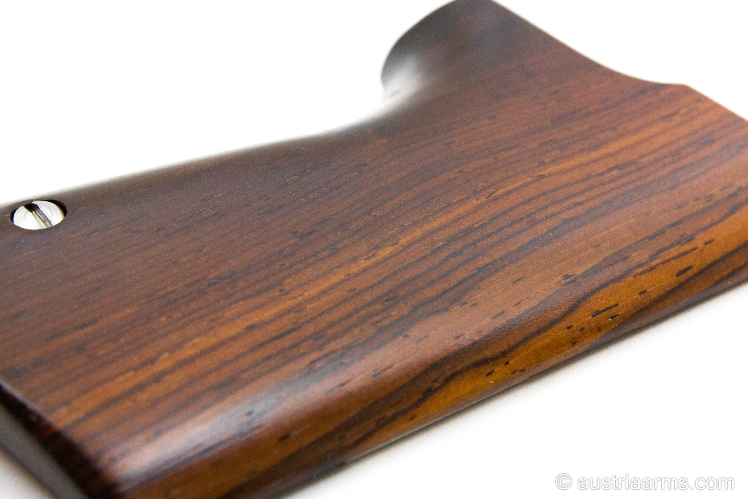 Coco Bolo hat von Natur aus eine sehr ausdrucksstarke Maserung und variiert in Farbe zwischen dunklem Braun, Rot- und Goldtönen. Jede Griffschale ist daher ein einzigartiges Unikat, das der Waffe ein individuelles Erscheinungsbild verleiht.