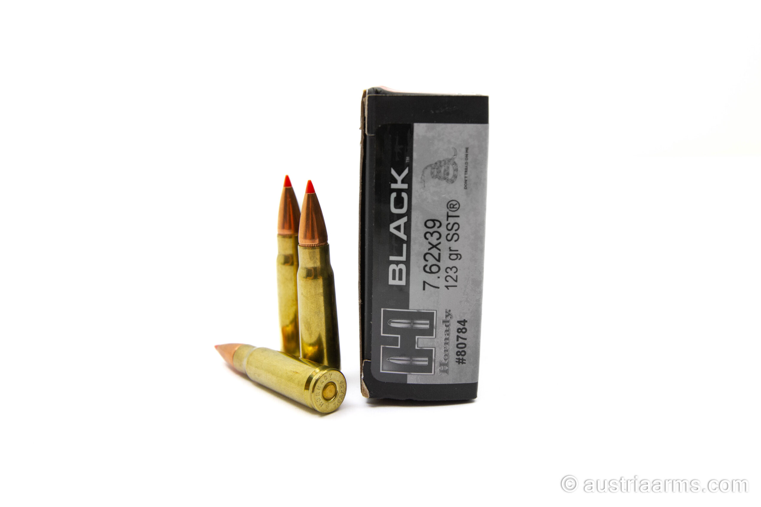 7,62×39 von der Hornady BLACK Munitionslinie, ist ein Teilmantelgeschoss mit Polymerspitze.