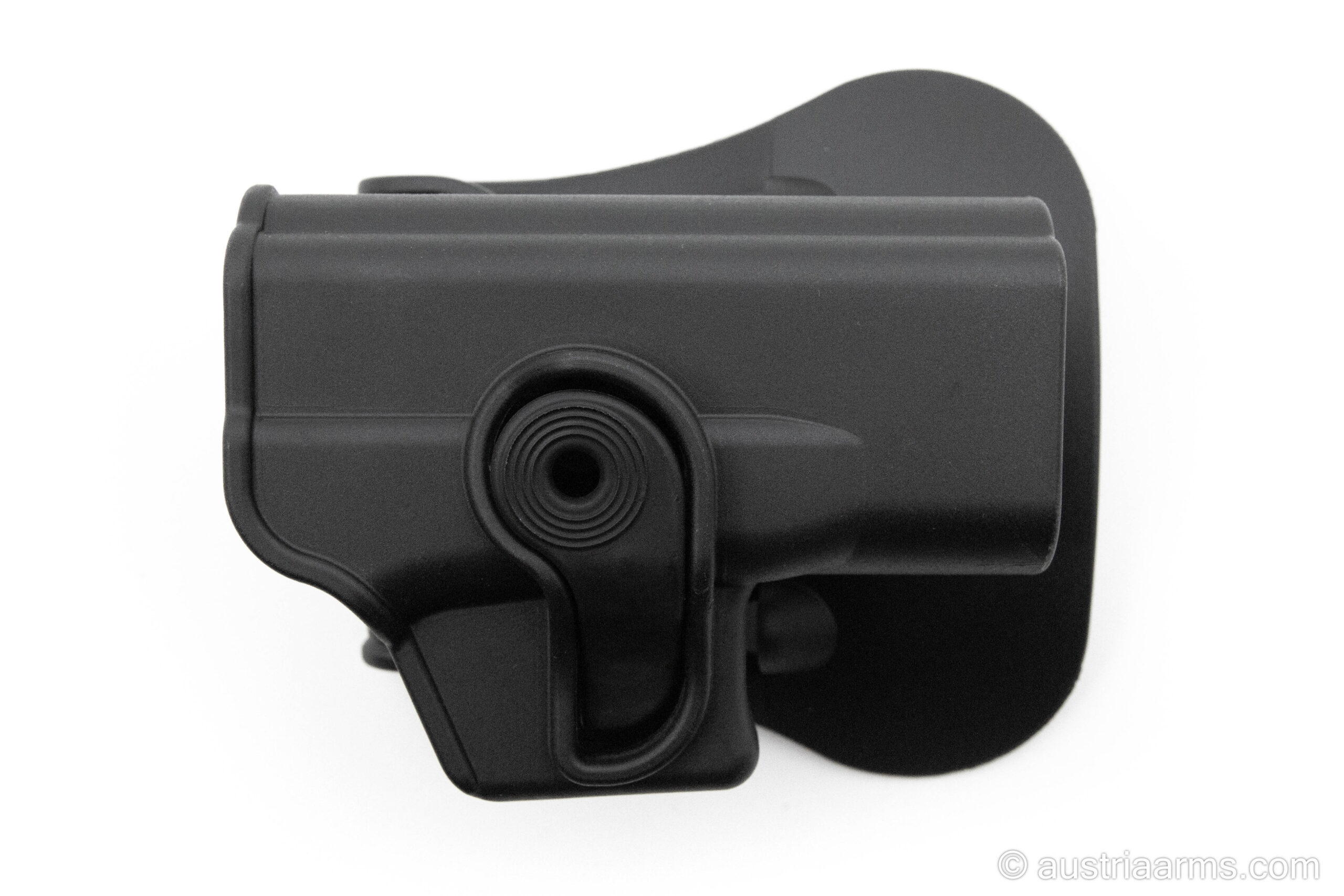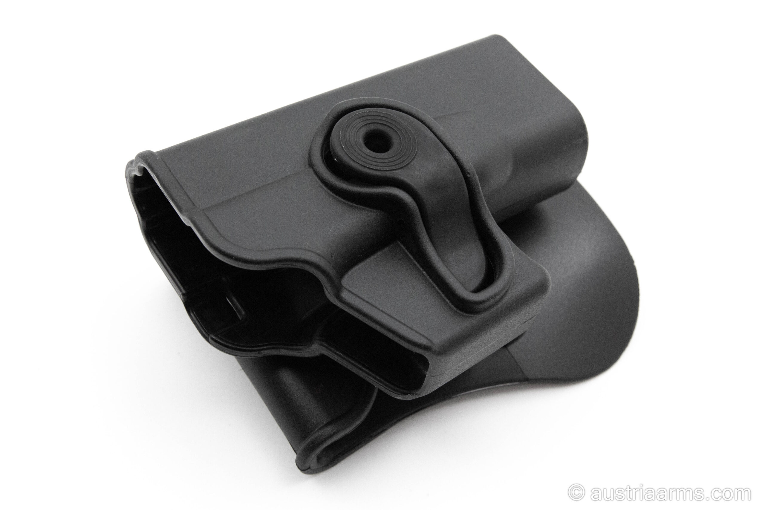 Dank des Entriegelungshebels und der 360° Drehbarkeit ist der Holster für schnelles Ziehen und individueller Einstellung des Ziehwinkels der passende Partner im Dienst oder Training.