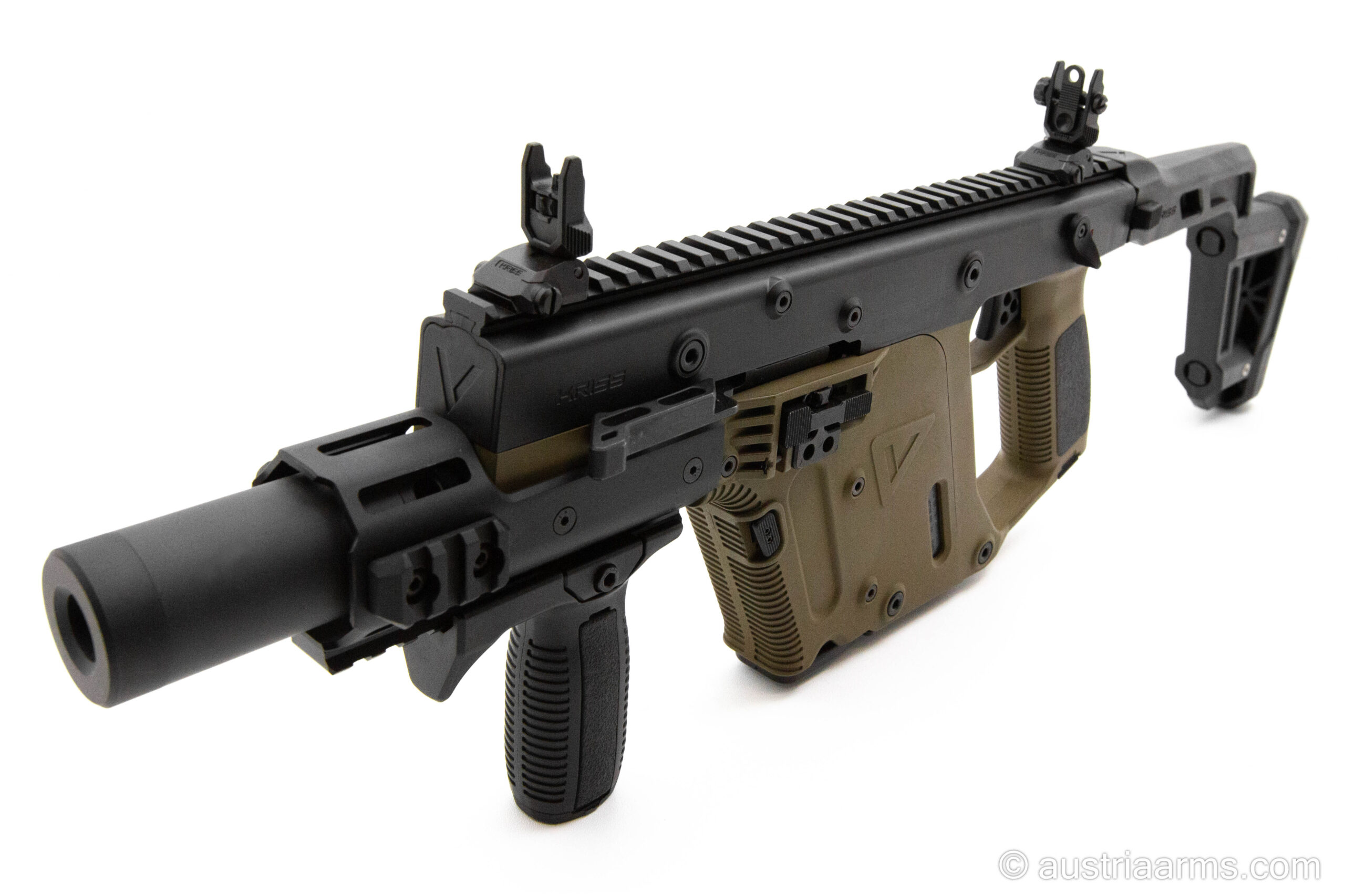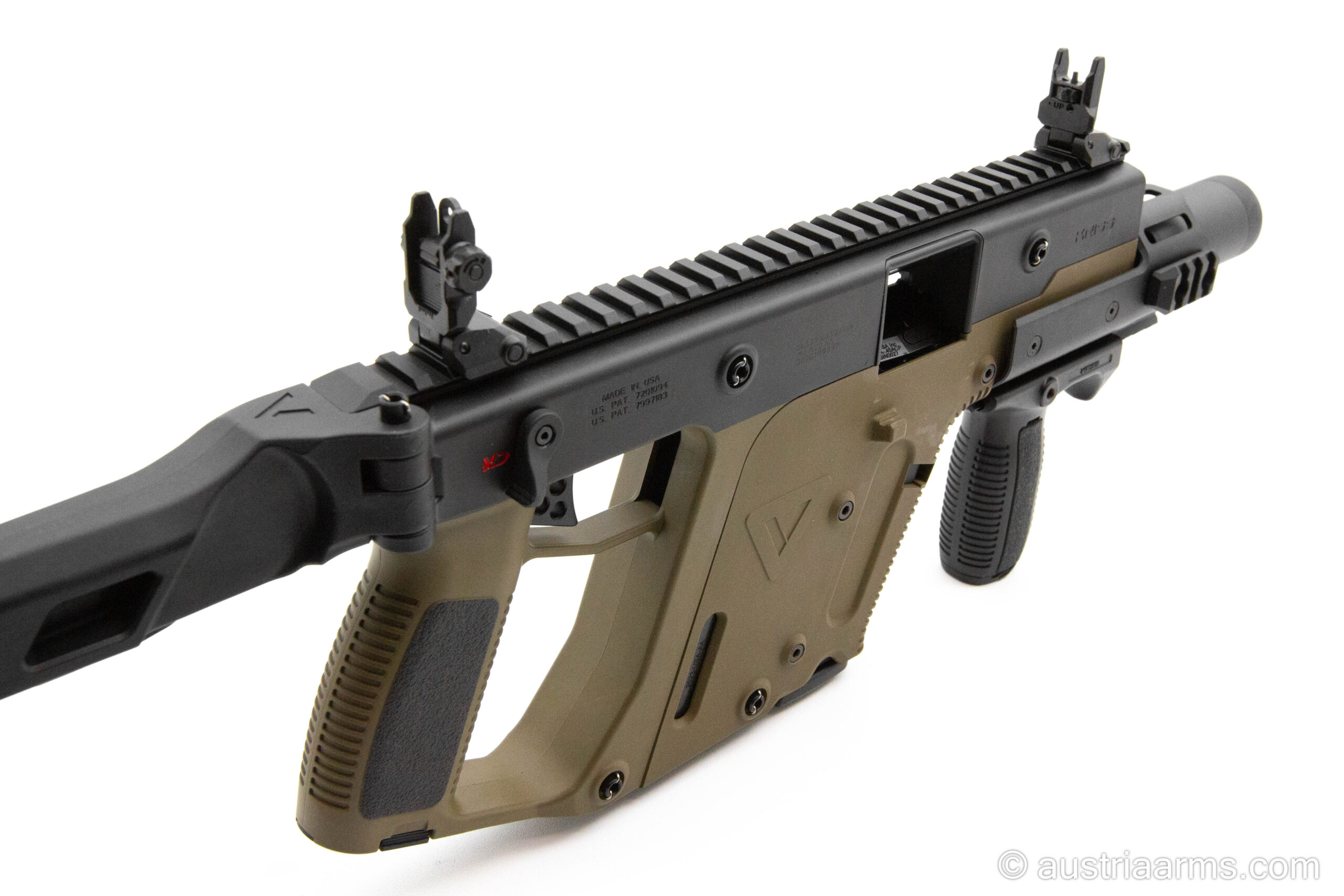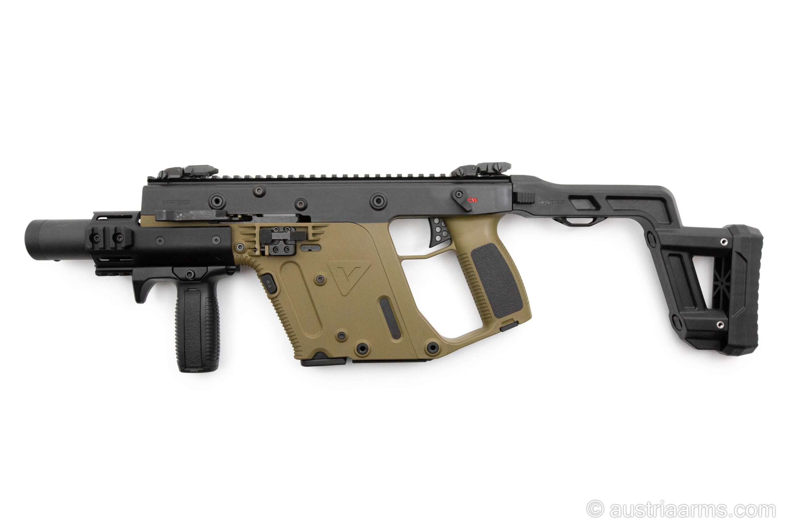 Combining the original looks of early Vector prototypes with the refinements of the modern-day Vector, the Vector Origin will be offered as a .45ACP carbine with a 16” barrel, round barrel shroud, hinged upper receiver with side folding stock, and accessorized with our steel folding sights and vertical grip, and hard case with custom cut foam.