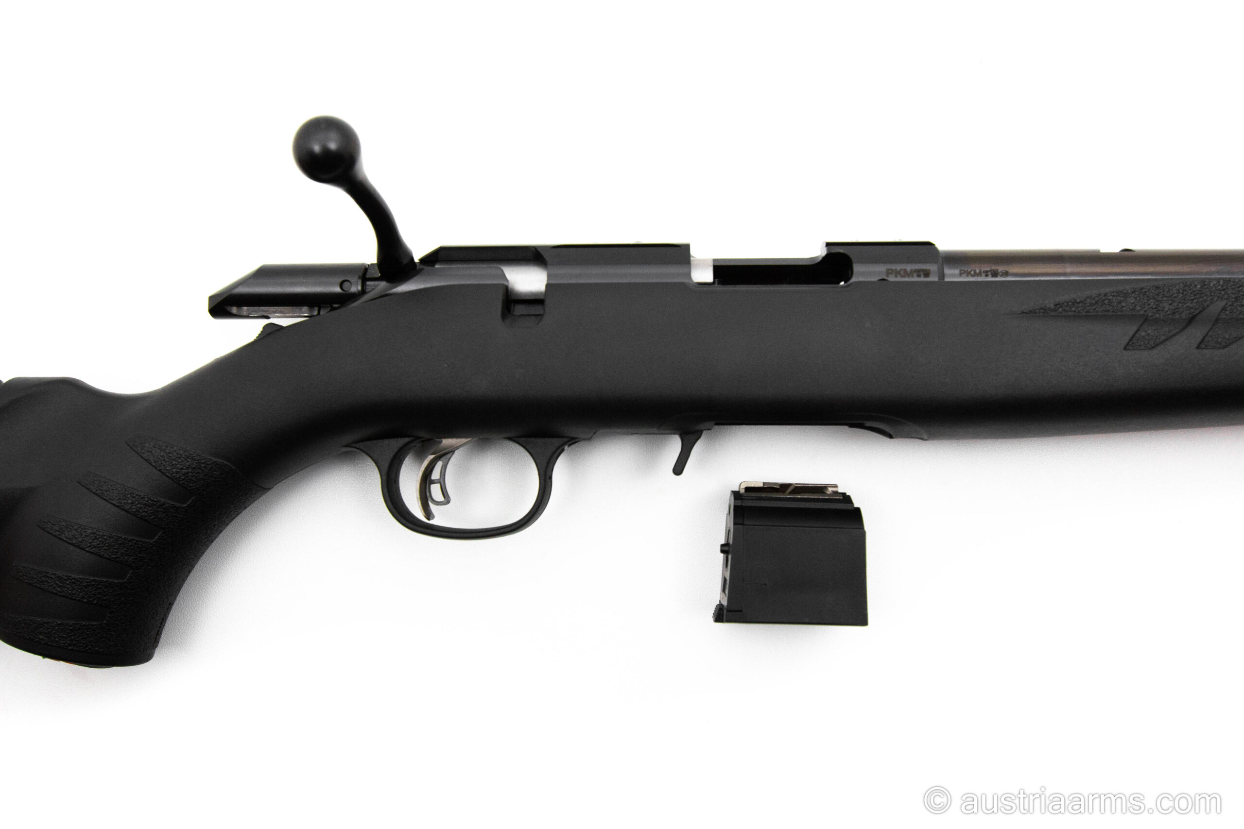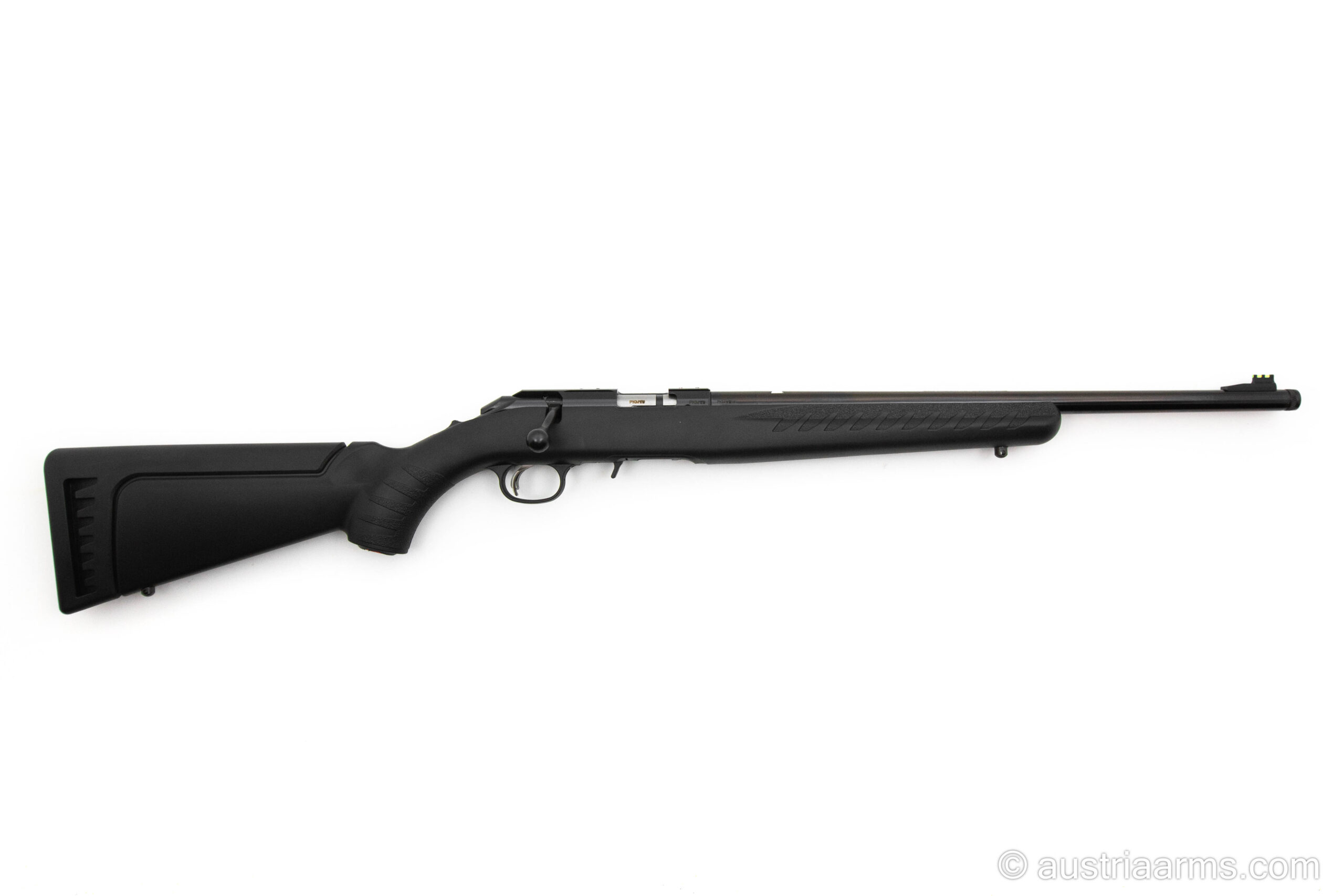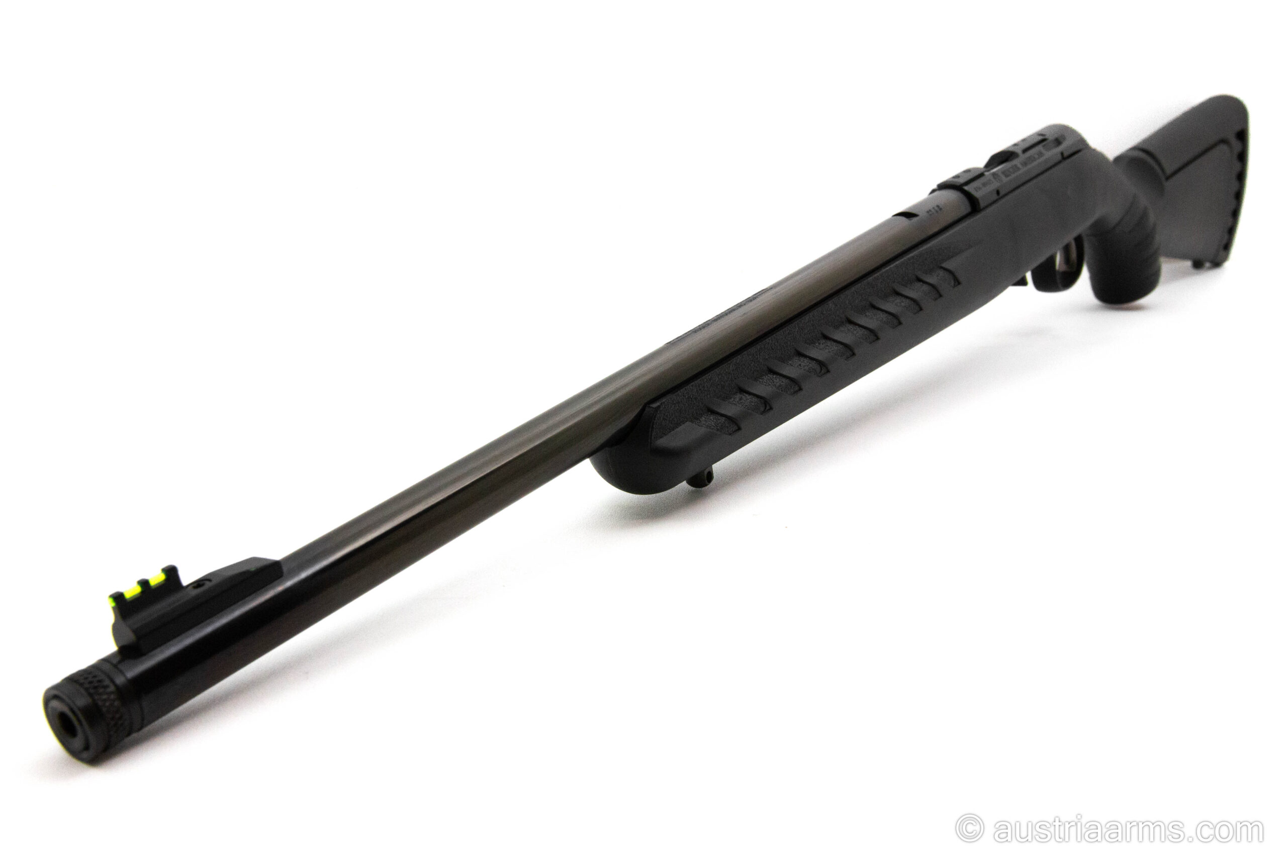 Zuverlässige und robuste Repetierbüchse mit schwarzem Polymerschaft, Fiberoptik-Visierung, Sicherheitsabzug, herausnehmbares 10 Schuss-Magazin, kompakte Länge, sehr leicht und führig. Optionale Magazine für 15 und 25 Patronen erhältlich. Gesamtlänge nur 93 cm. Lauf mit Mündungsgewinde 1/2″ x 28.