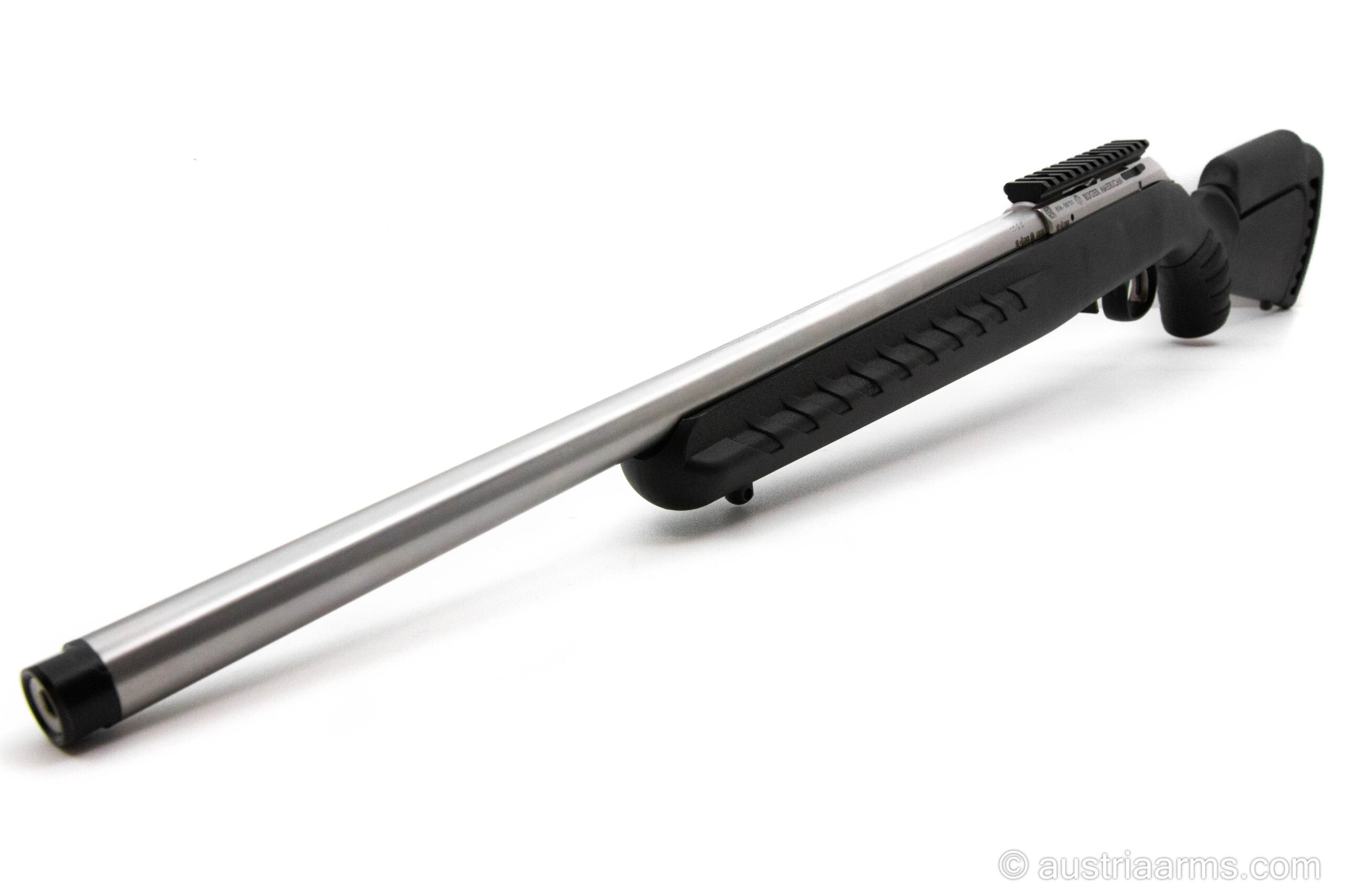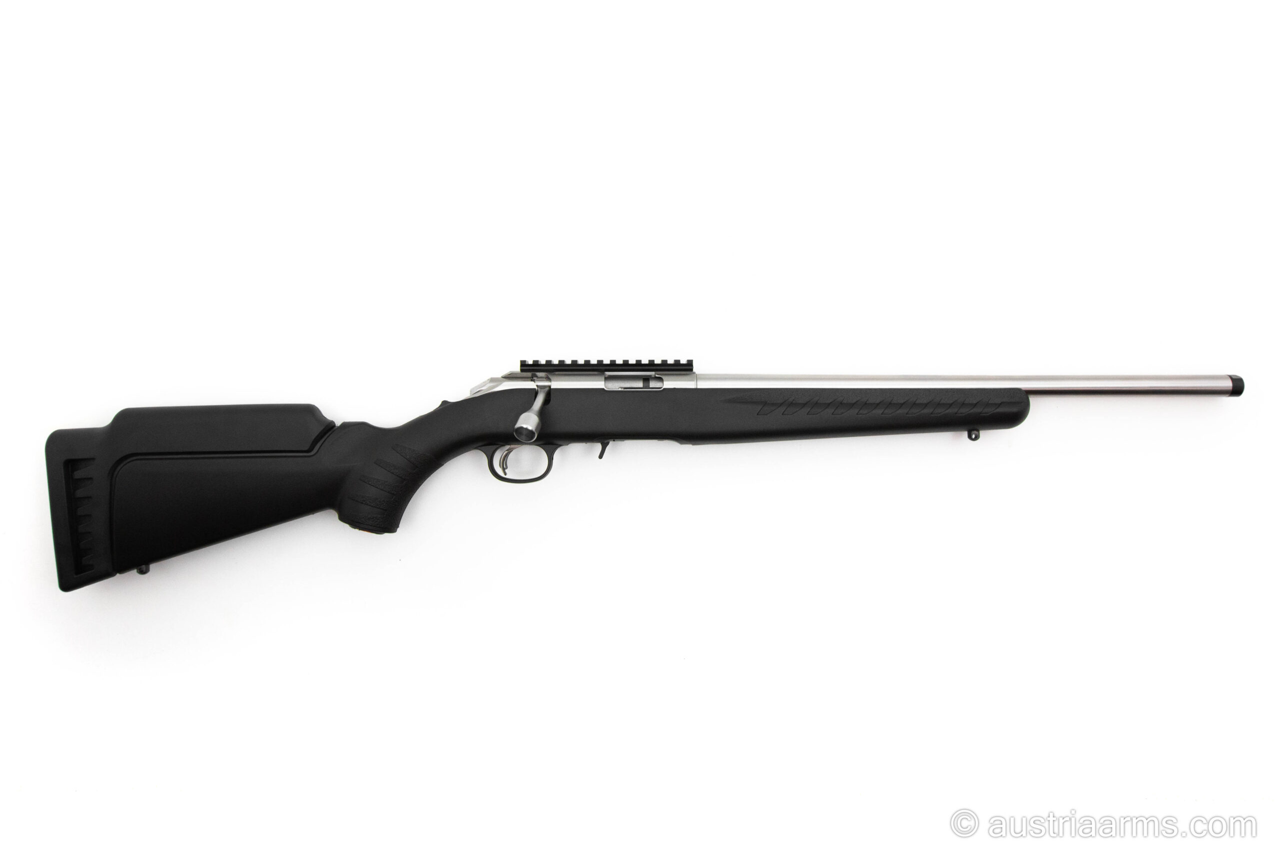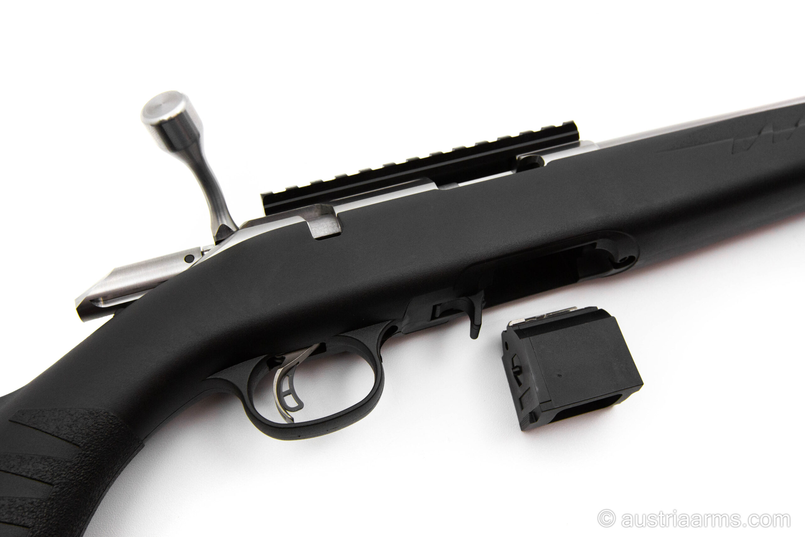 Zuverlässige und robuste Repetierbüchse aus Stainless Stahl mit schwarzem Polymerschaft, Sicherheitsabzug, herausnehmbares 10 Schuss-Magazin, kompakte Länge, sehr leicht und führig. Optionale Magazine für 15 und 25 Patronen erhältlich. Gesamtlänge nur 93 cm. Lauf mit Mündungsgewinde 1/2″ x 28.