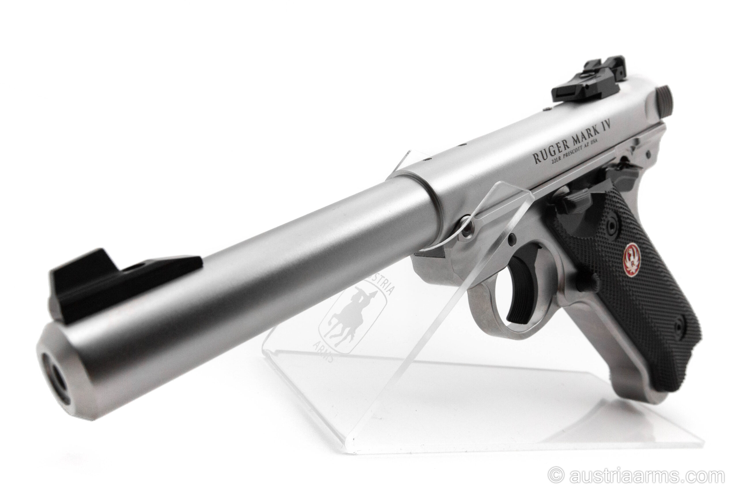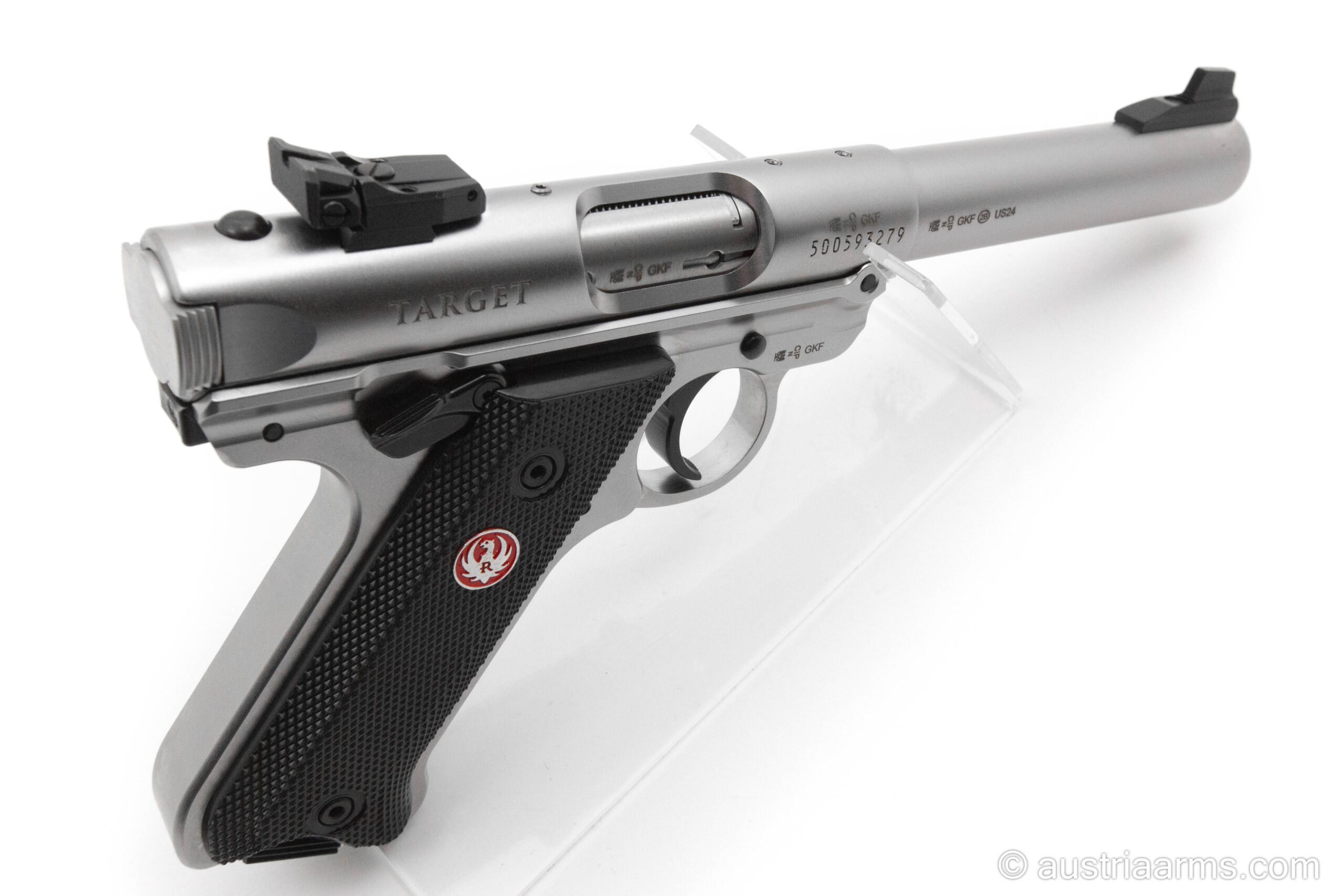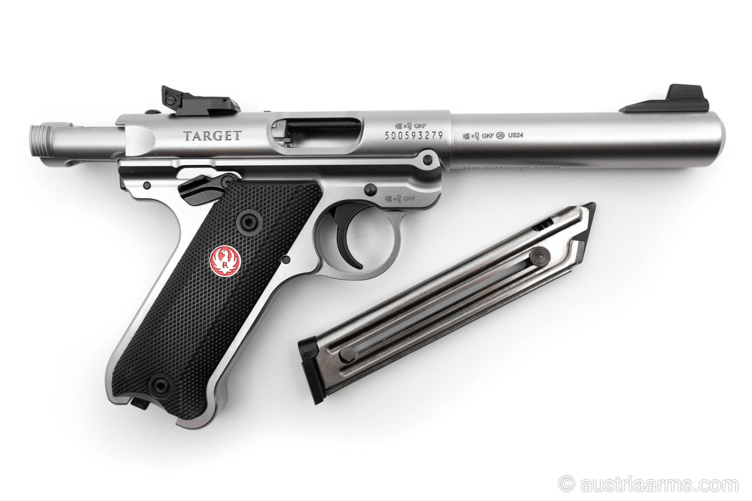 Stainless-Stahlausführung der beliebten und ebenso bewährten Ruger Mark IV mit 5.5 Zoll Bullbarrel. Einstellbare Präzisionskimme, schwarzes Scheibenkorn.. Zuverlässige und sehr präzise schießende Freizeit- und Sportwaffe im Kaliber .22 LR. Magazinkapazität: 10 Patronen. Sehr einfach zu zerlegende Waffe, daher pflegeleicht.