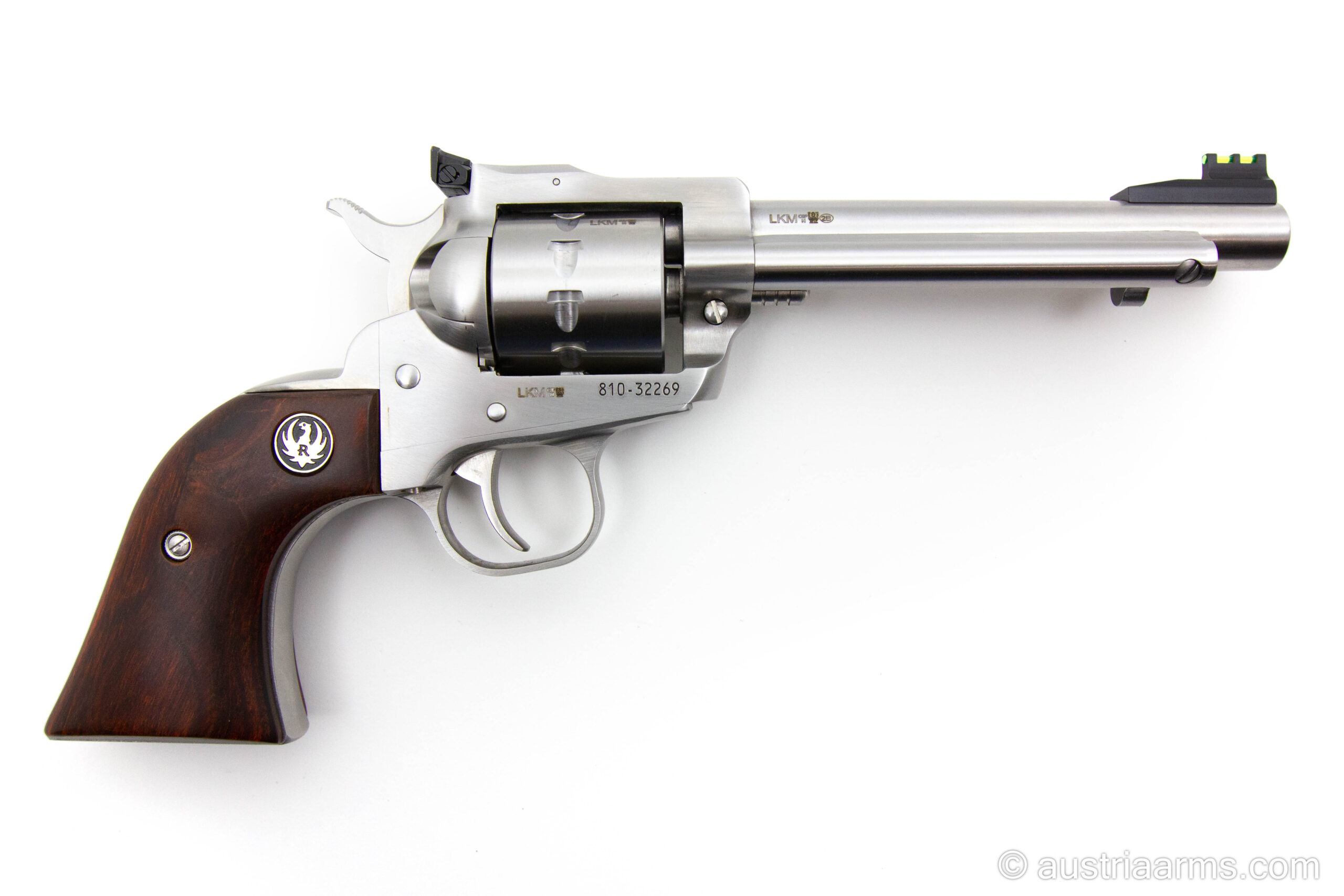 Alles an dieser Waffe ist präzise, ausgereift und einfach nur schön anzusehen. Mit 5.5 Zoll Lauflänge, einem verstellbaren Visier, 10 Patronen Trommelkapazität im Kaliber .22 LR und edlen Holzgriffen bietet dieser Revolver alles, was das Herz eines Sportschützen und Western Enthusiasten höher schlagen lässt.