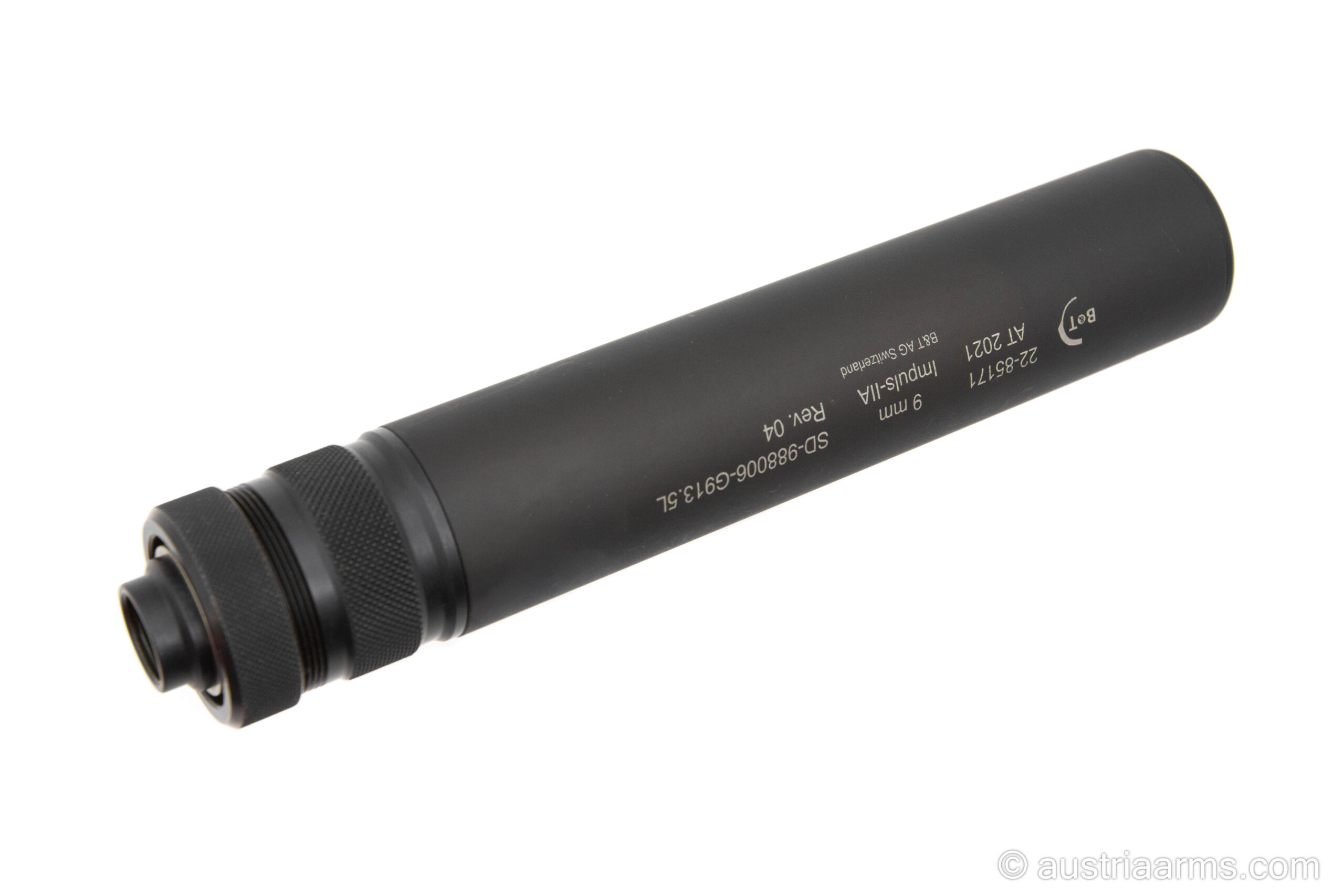Der B&T Impuls-IIA 9×19 mm verbindet hochwertige Verarbeitung mit bewährter Technik und ist daher die ideale Wahl für Anwender, die einen zuverlässigen und passgenauen Schalldämpfer für Glock-Pistolen suchen.