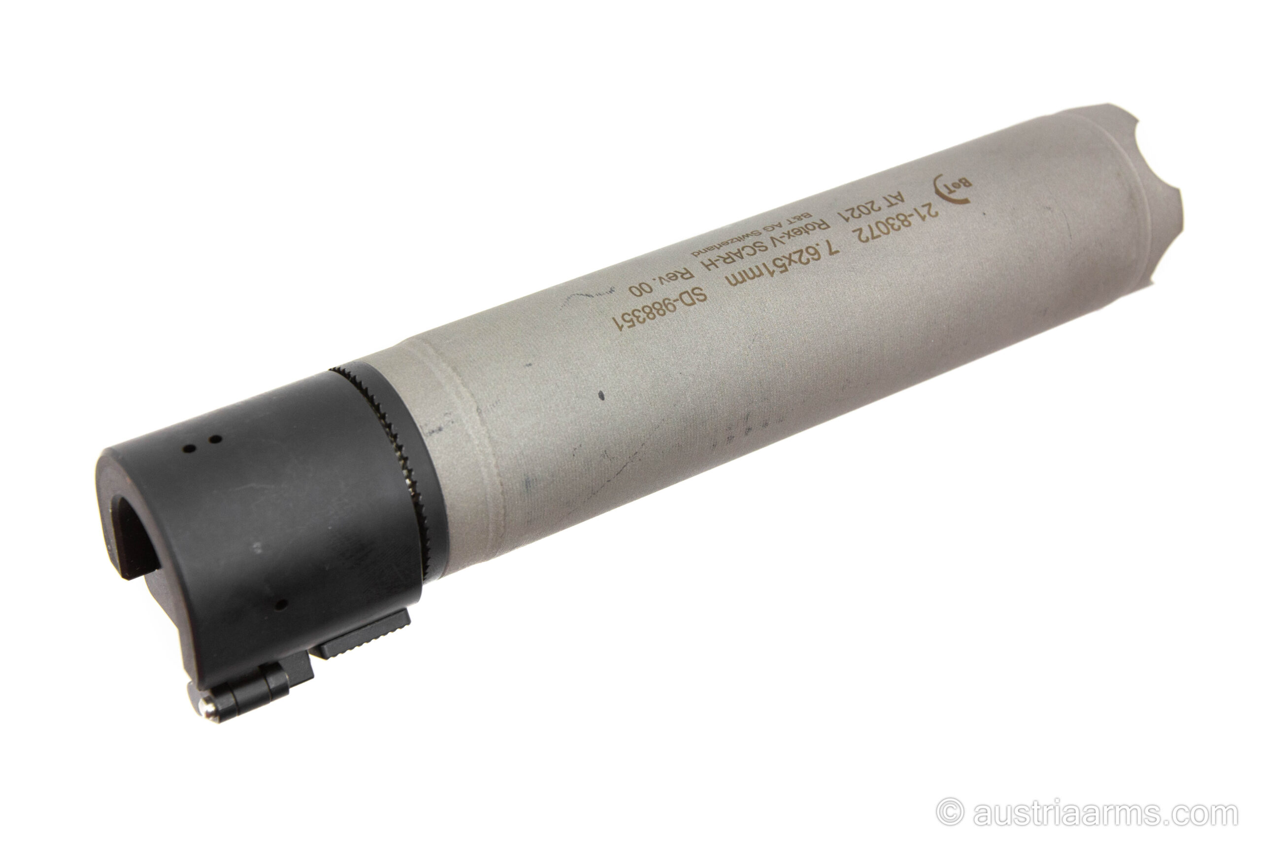 Der B&T Rotex-V Schalldämpfer ist für das Kaliber 7.62×51 mm (.308 Win) geeignet und wurde speziell für das FN SCAR entwickelt. Er reduziert den Mündungsknall und auch das Mündungsfeuer deutlich und sorgt dadurch für mehr Schießkomfort sowie besseren Gehörschutz.
