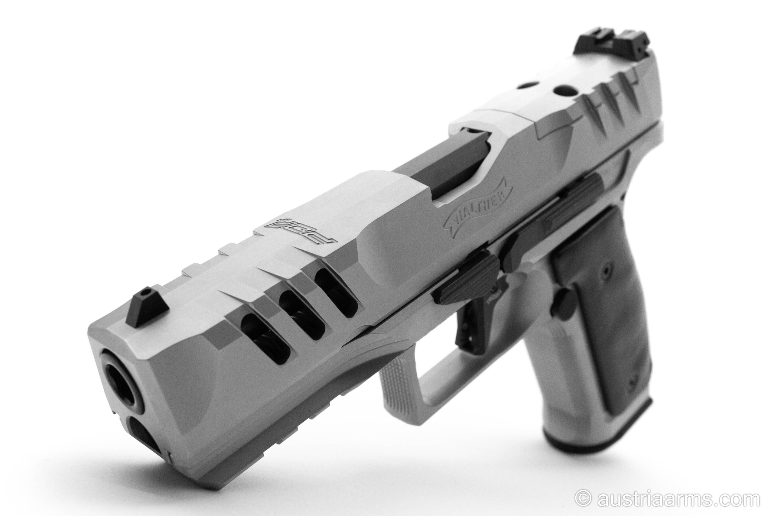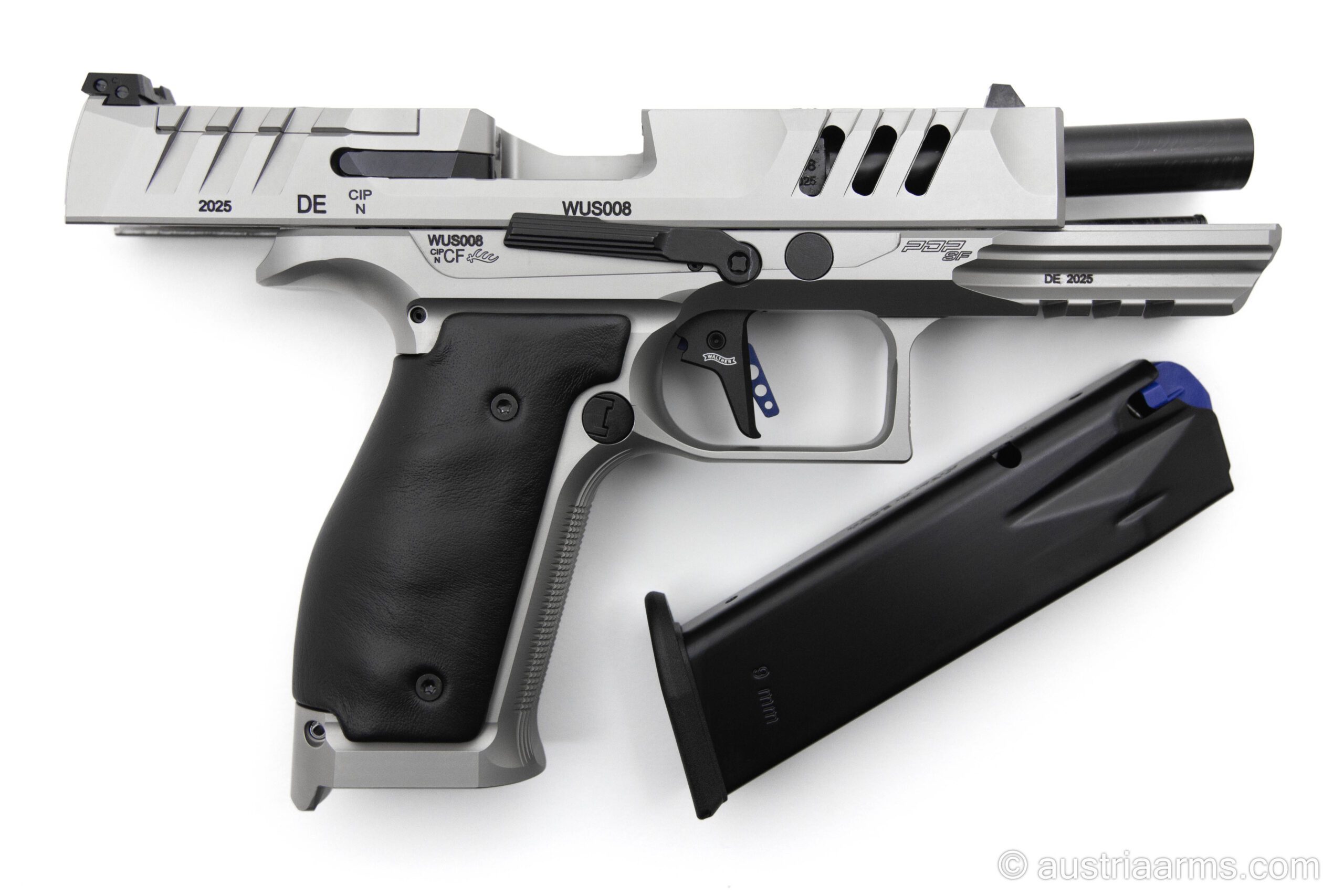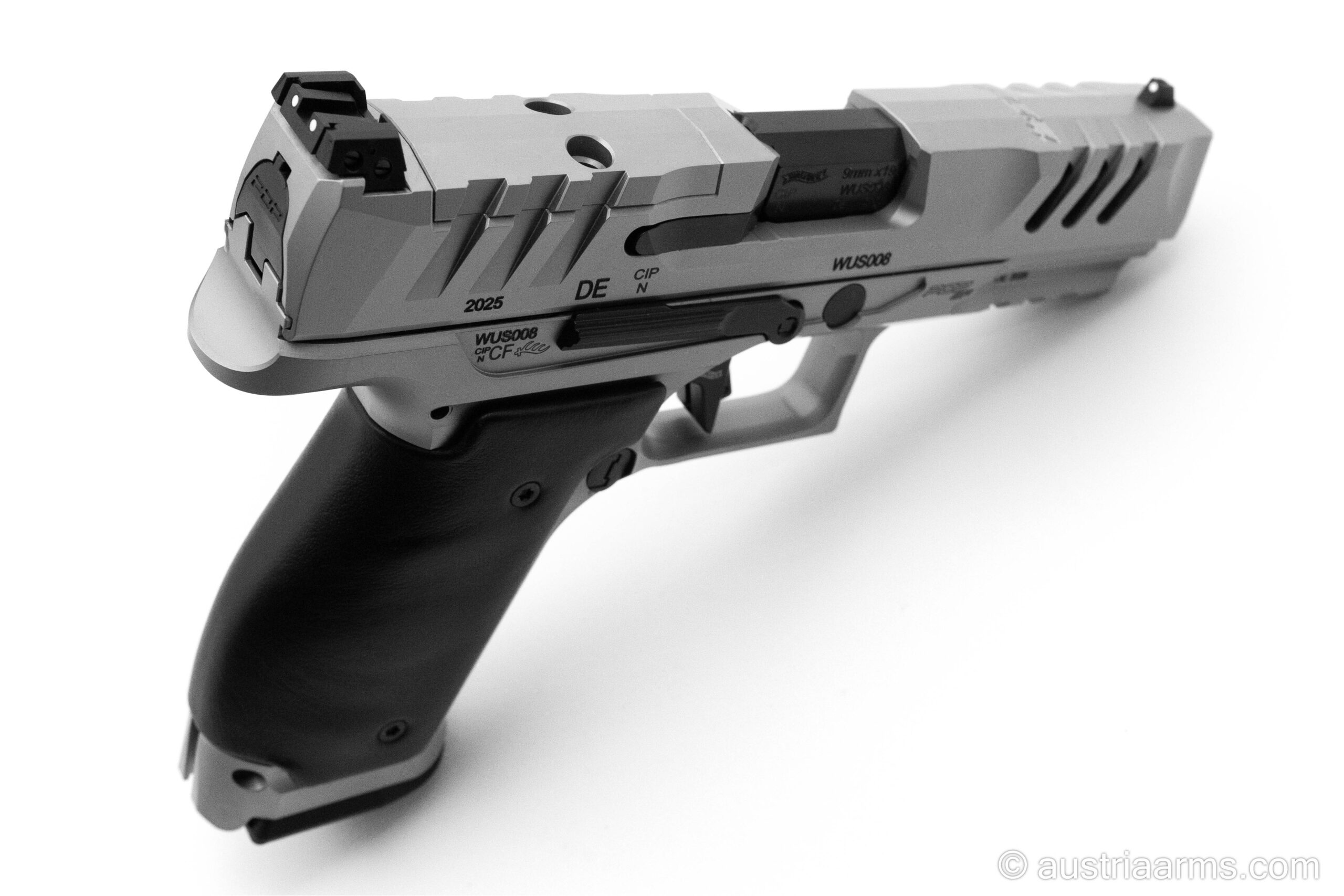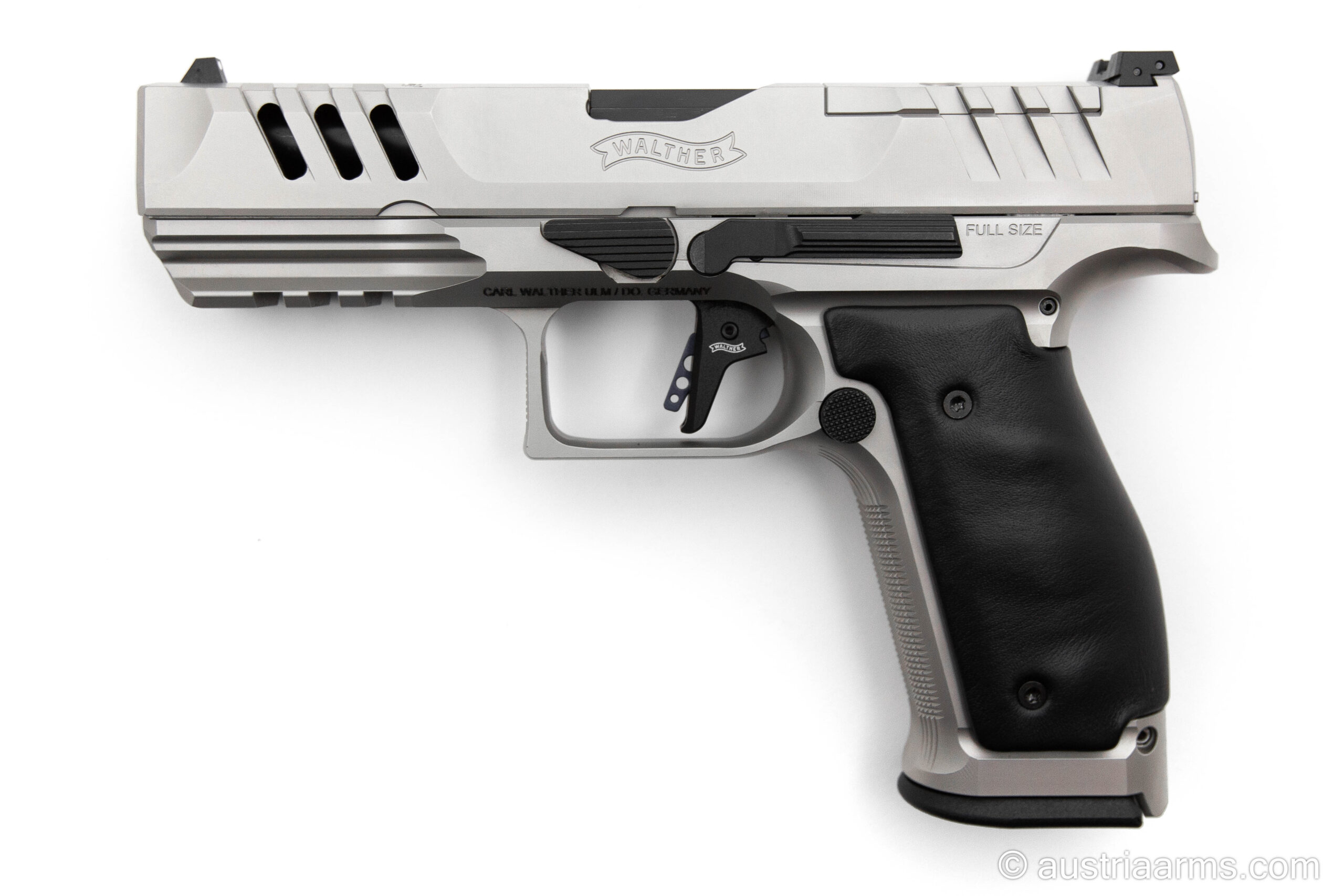 Exklusiv für die limitierte Edition präsentiert Walther eine 4,5 Zoll PDP Steel Frame in satinierter Edelstahl-Ästhetik. Perfekt abgestimmt und auf das Wesentliche reduziert. Ganz in Leder und Stahl. Die einzigartige PVD-Beschichtung garantiert nicht nur extreme Oberflächenhärte, sondern auch ein Finish der Spitzenklasse. Mit dem legendären Dynamic Performance Trigger ausgestattet, positioniert sich die Waffe bereits heute als moderne Ikone und setzt neue Maßstäbe in sportlicher Performance und zeitloser Eleganz.