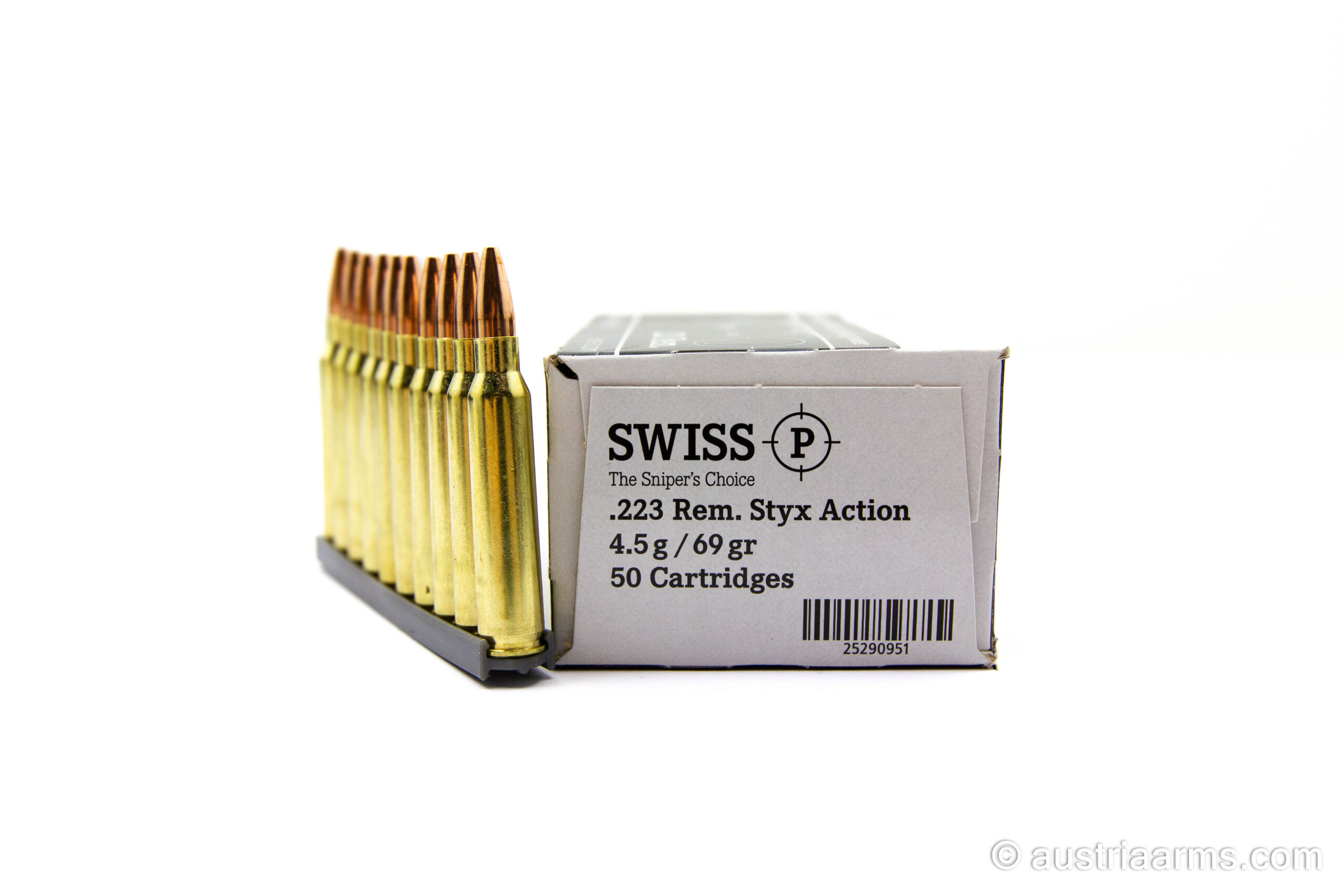 Die Swiss P .223 Rem. Styx Action JHP 69grs ist eine Patrone mit Deformationsgeschoss für hohe Stoppwirkung, ideal für taktische Einsätze.