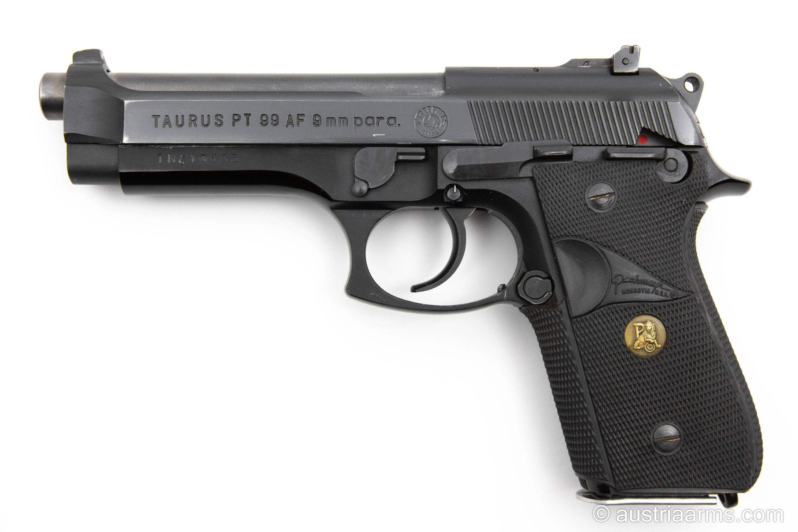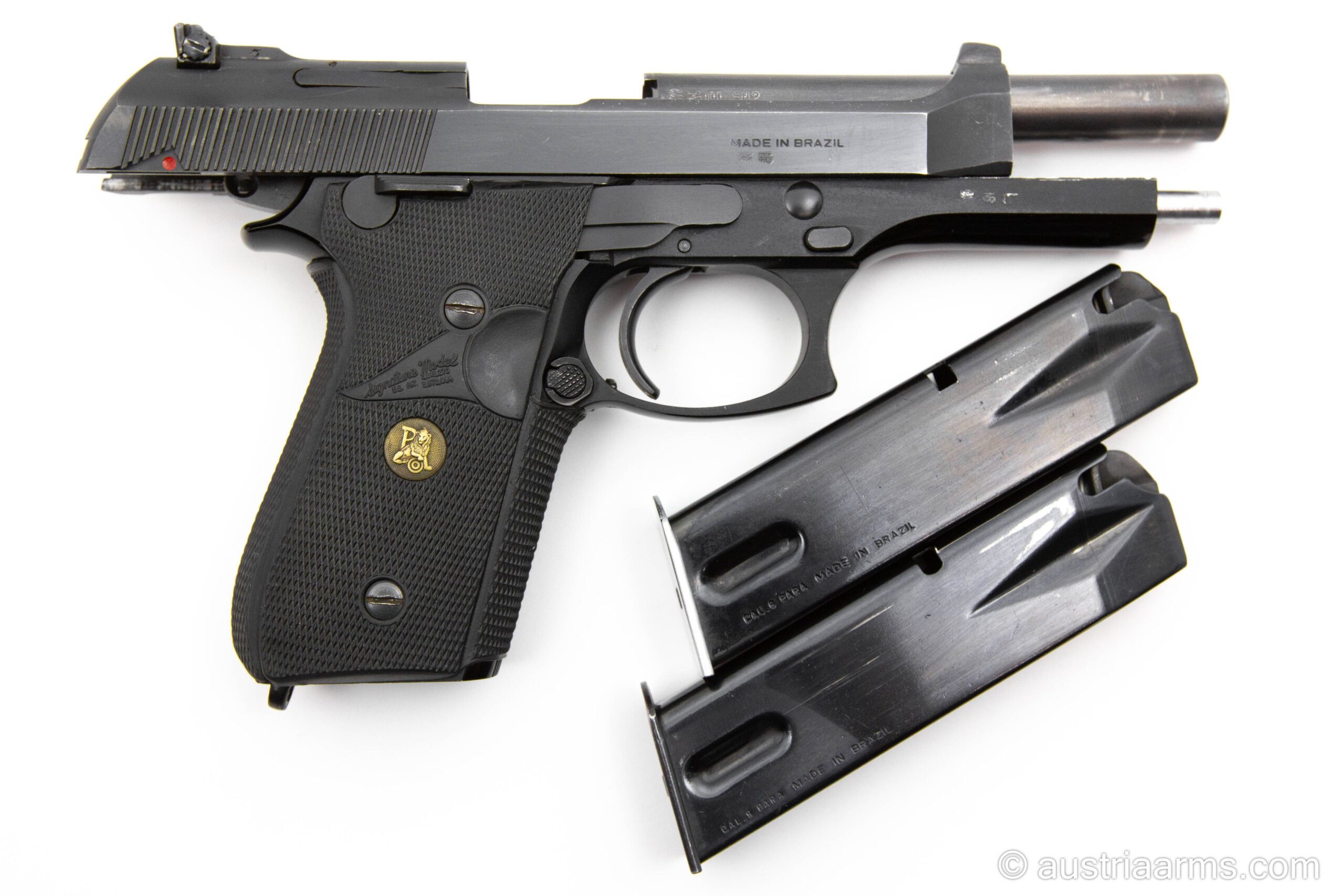 Basierend auf der berühmten Beretta 92, hat Forjas Taurus ein gleichwertigen Modell in Brasilien gebaut. Sieht gut aus, funktioniert gut, schont den Geldbeutel. Gebrauchtwaffe in sehr schönem Zustand, 15 Patronen Magazinkapazität. 5.0 Zoll Lauflänge, ausgestattet mit ergonomischen, rutschfesten Pachmayr Gummigriffschalen. Komplett in der Originalschachtel mit einem Reservemagazin.