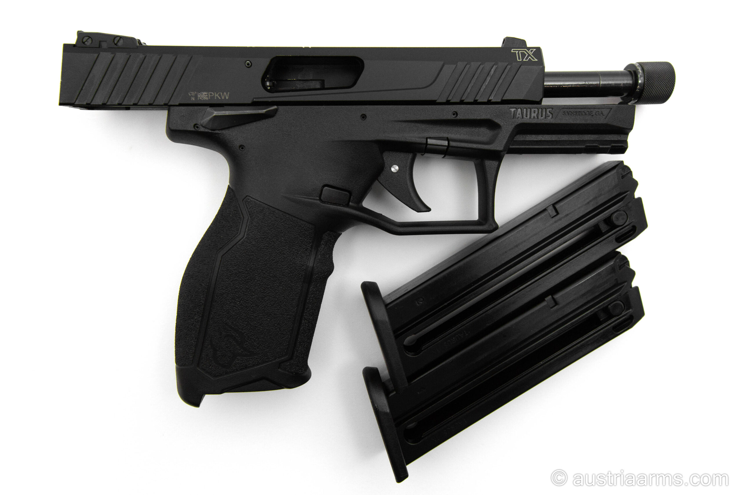 Kompakte Kleinkaliberpistole .22 LR mit 16 (!) Patronen Magazinkapazität. Leicht zu bedienende Pistole, geringer Rückstoß. Durch den Gewindelauf kann auch ein Schalldämpfer montiert werden. Modernes Pistolenkonzept mit leichtem Polymerrahmen, außenliegende manuelle Sicherung. Taurus ist als brasilianischer Hersteller bekannt, der auf dem zivilen und behördlichen Weltmarkt einen sehr guten Ruf genießt. Komplett in der Originalbox mit einem Reservemagazin.