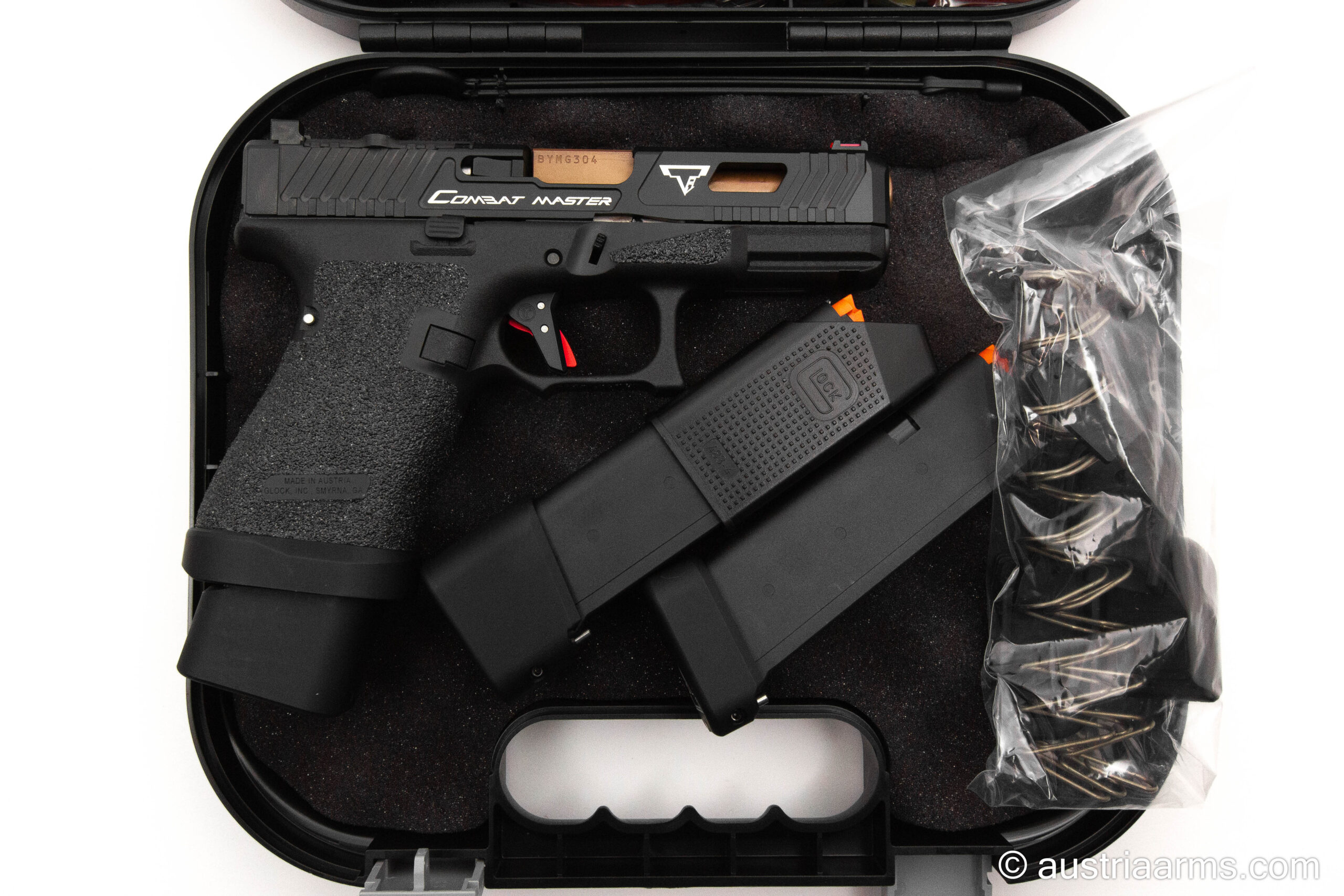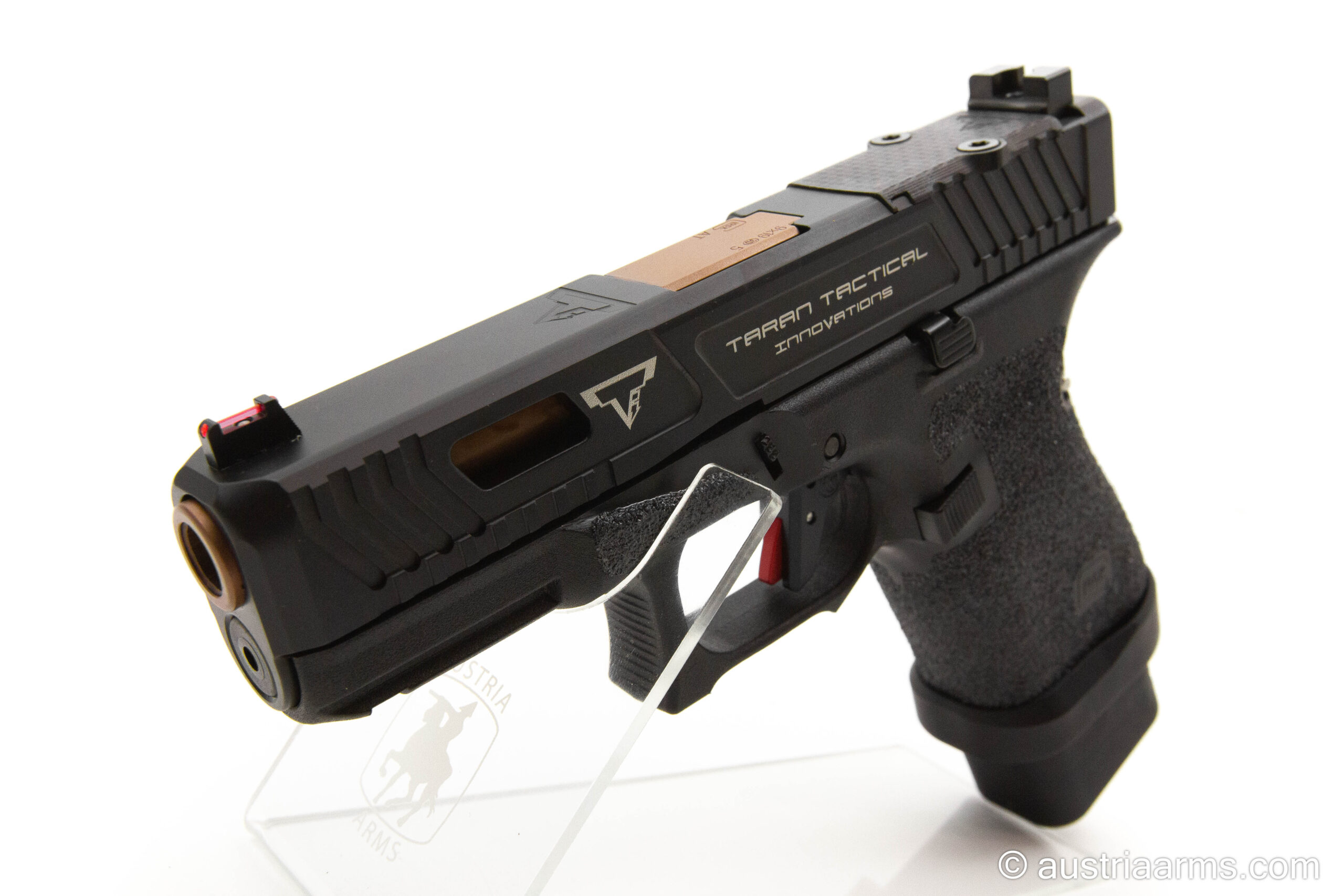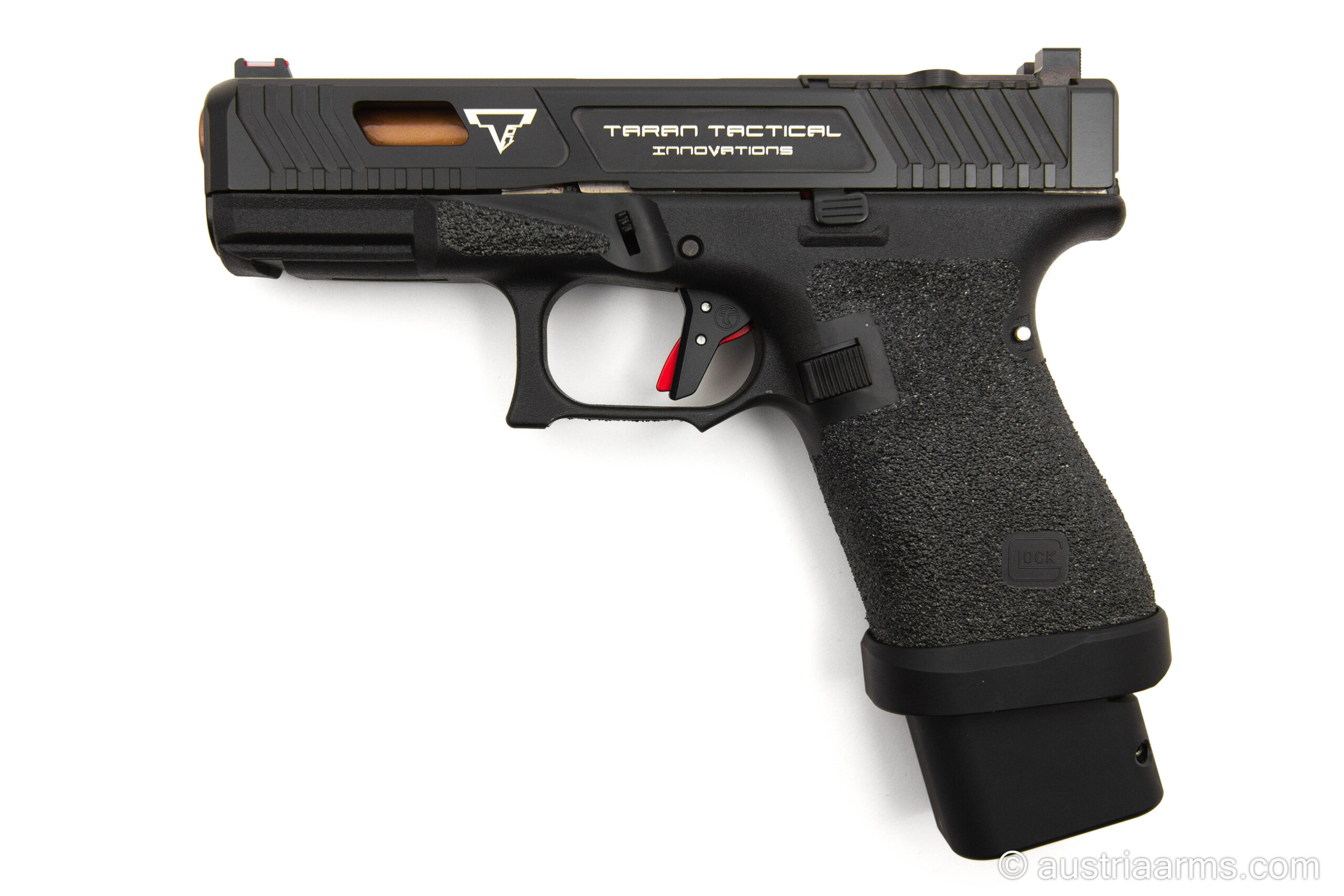 Auf Basis einer Glock 19 wurde von der Customschmiede des US Weltklasseschützen und Hollywood-Ausstatters Taran Butler („John Wick“ etc..) die G19 Combat Master geschaffen. Dies ist mehr als eine Waffe, es ist ein technisches Kunstwerk. Die Zuverlässigkeit einer Glock Pistole wurde mit technoider Ästhetik vereint. Die TTI Combat Master wird ihrem Besitzer lebenslange Freude machen. Waffen von Taran Butler sind auf dem Markt kaum zu bekommen. Wir haben lange darauf gewartet, endlich ist dieses Meisterwerk bei Austria Arms sofort zu haben.