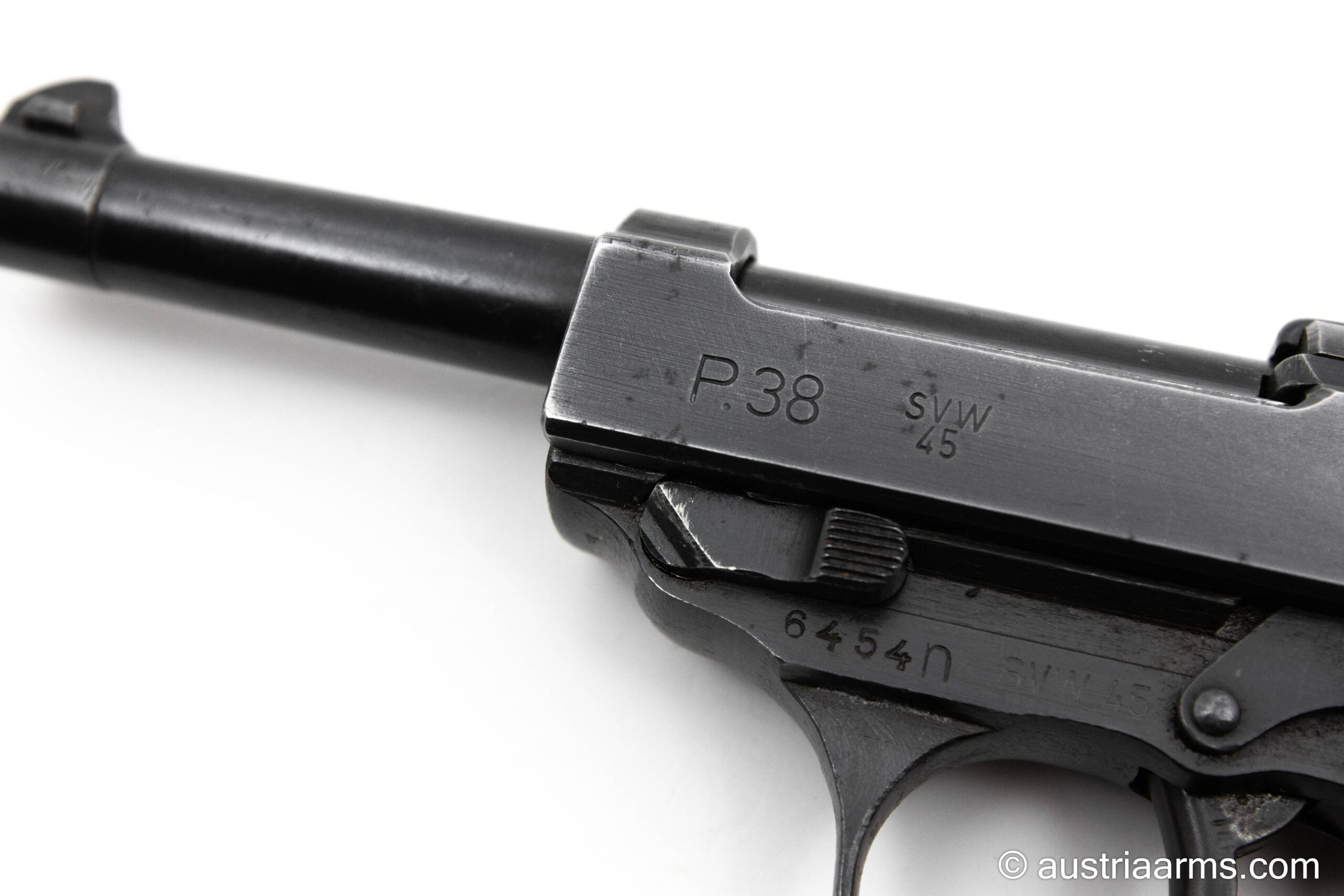 Schön erhaltene, originale WKII Walther P38. Fertigungscode SVW45 mit Stern. Nummerngleich.