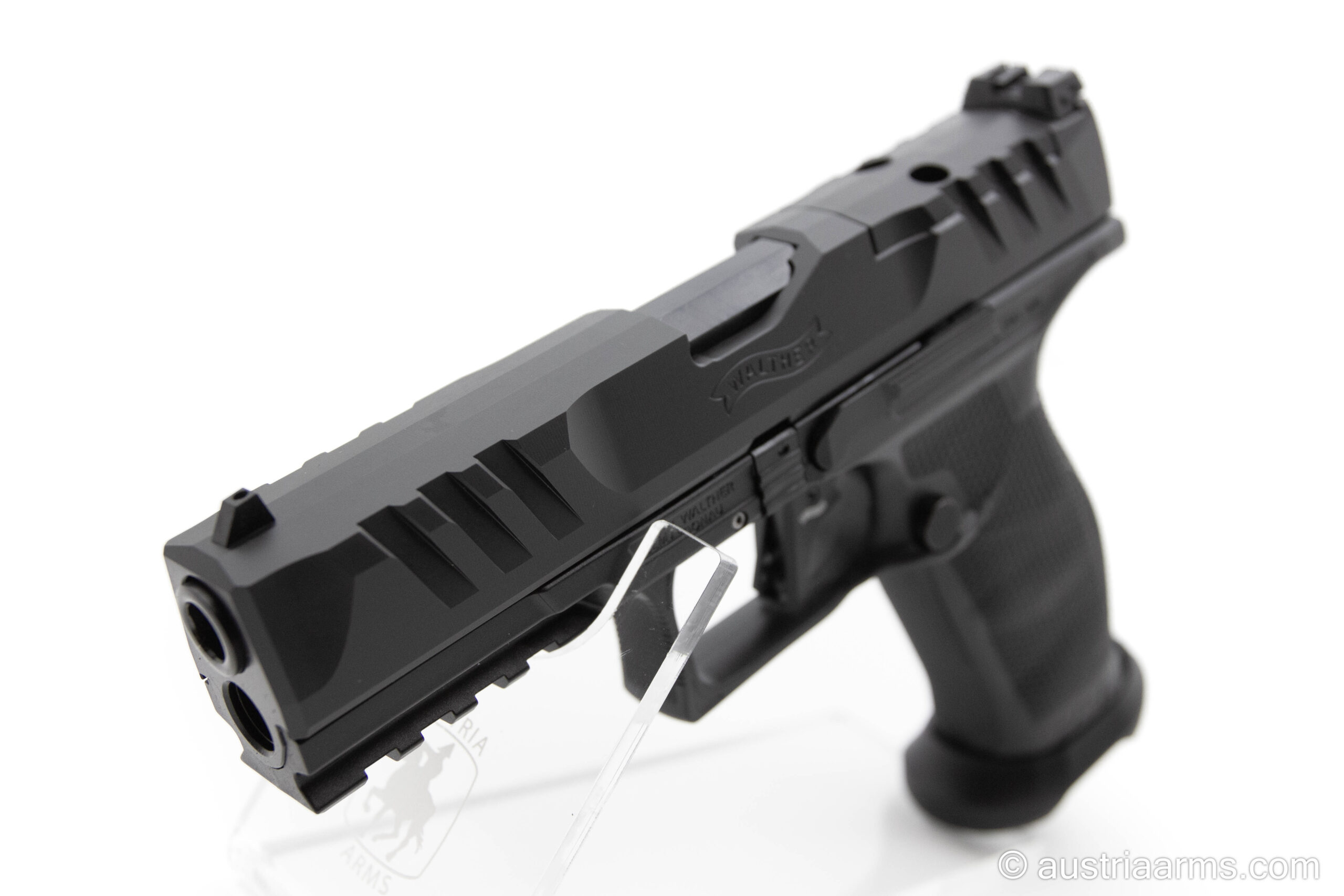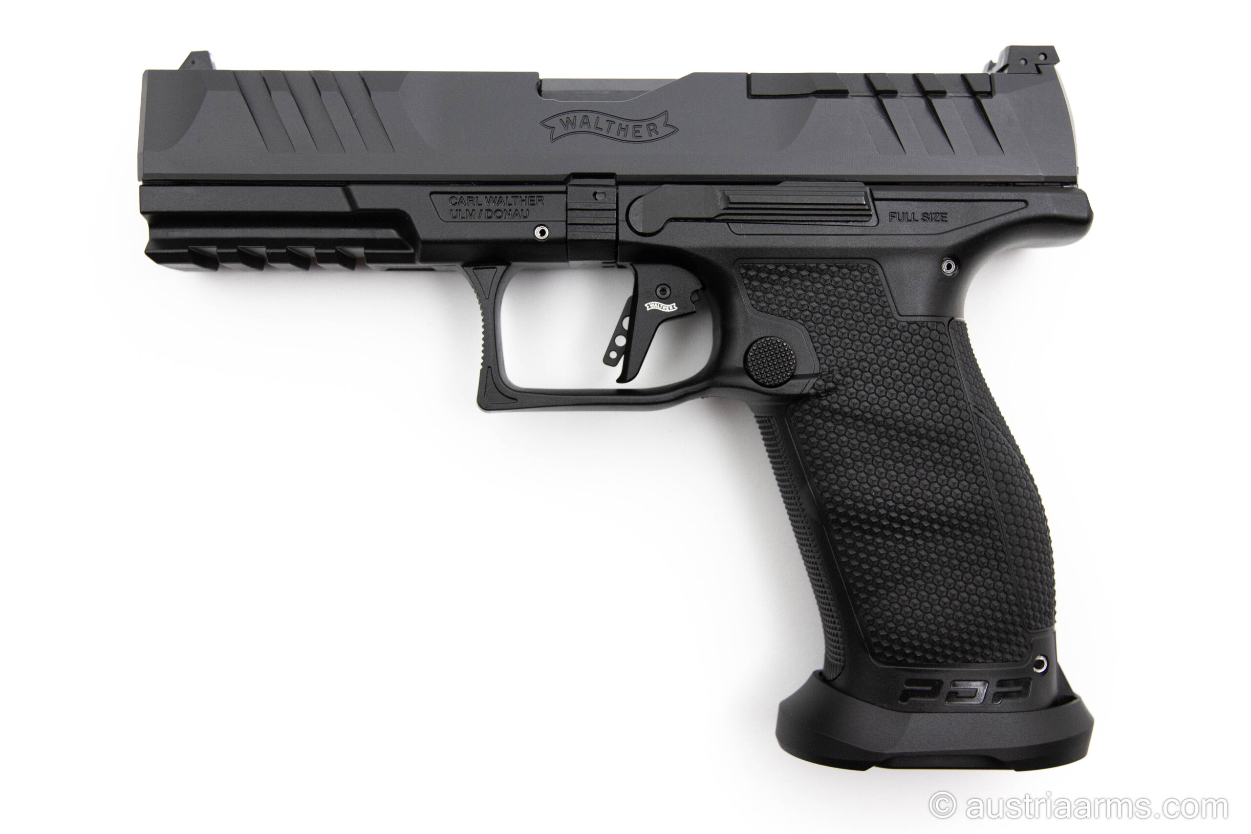Der verbaute Walther Performance Duty Trigger (PDT) sorgt für einen klar definierten Druckpunkt, einen kurzen Reset und ein deutlich verbessertes Abzugsgefühl. Das Ergebnis: höhere Präzision, schnellere Folgeschüsse und maximale Kontrolle.