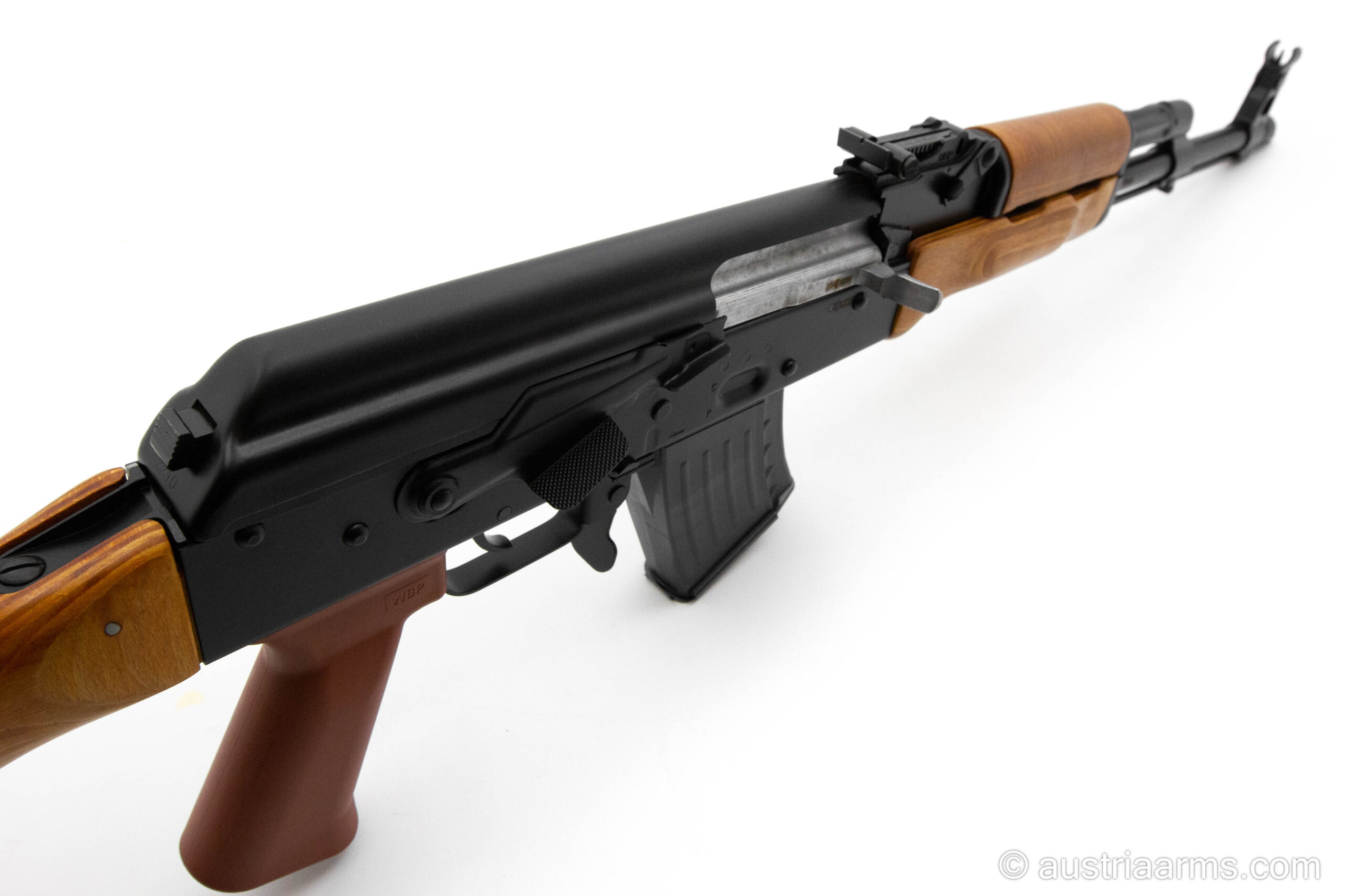 Klassische AK Variante mit Holzschaft von WBP (polnische Fertigung) in erstklassiger Fertigungsqualität. Authentisch, den Original entsprechend. Kaliber 7,62 x 39 mm, gesetzeskonforme Magazinkapazität = 10 Patronen.