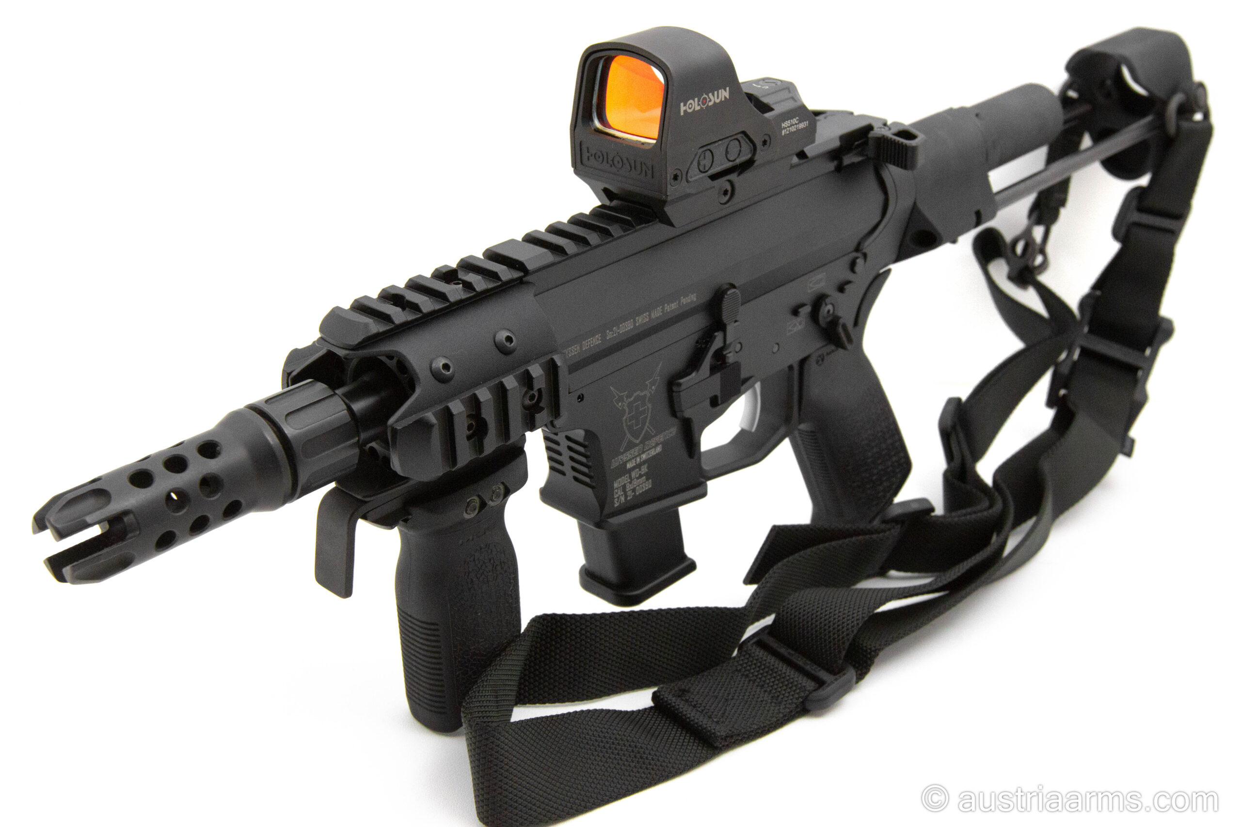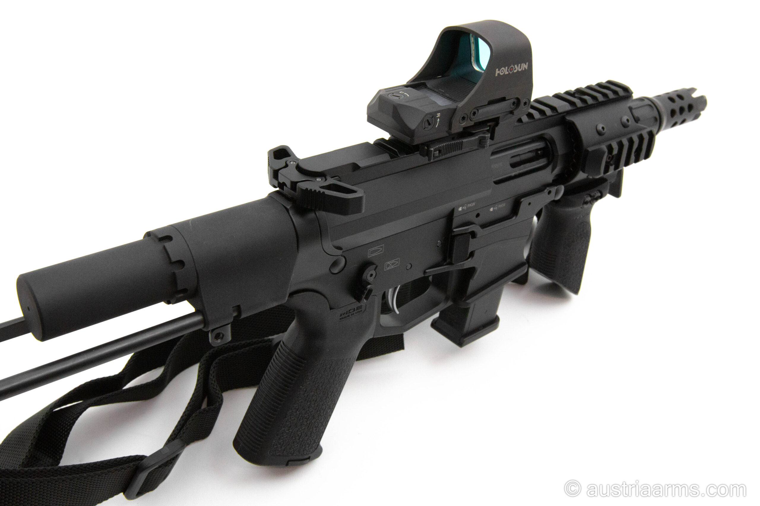 Diese kaum geschossene Waffe ist komplett mit einem solarbetriebenem HOLOSUN HS510C Reddot und einem neuwertigen Magpull Single Point Sling ausgestattet. Verkaufspreis an Endkunden mit Waffenbesitzkarte oder Waffenpass: € 2.390,00 (Neupreis dieser Waffe inkl. Zubehör wäre € 3.950,00)