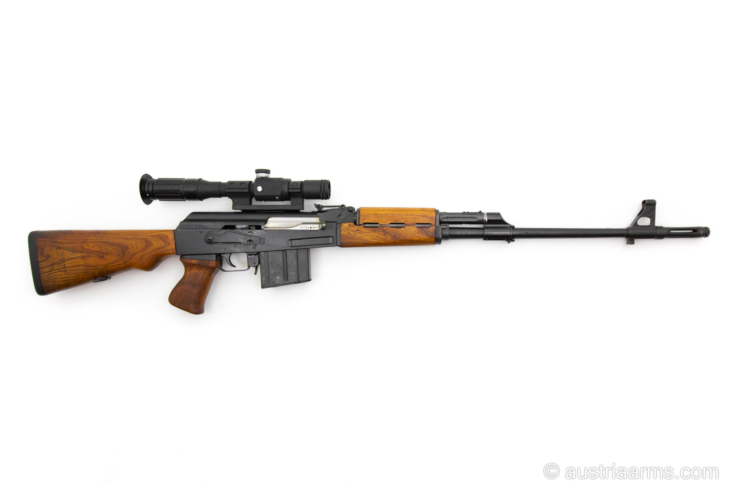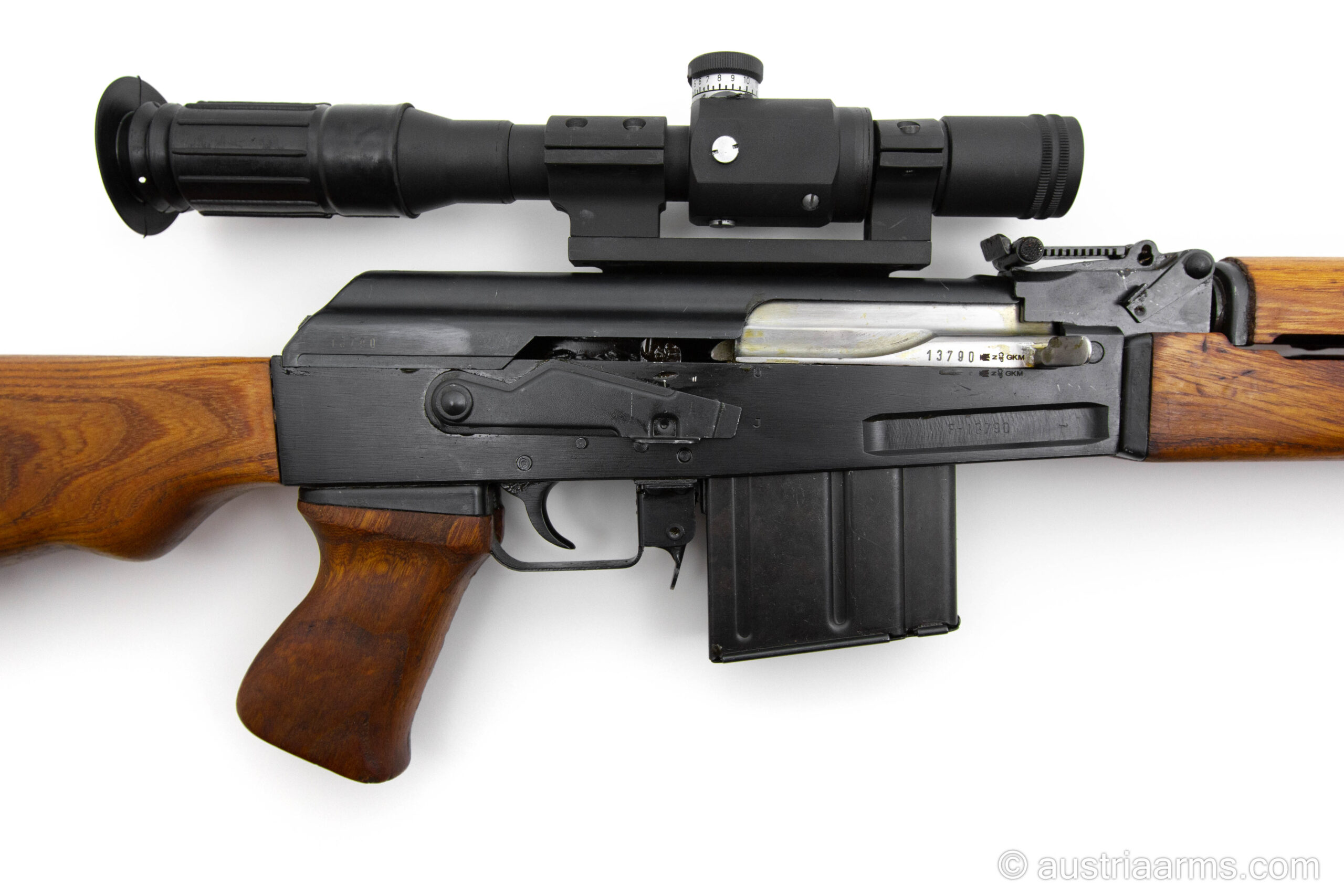 Die Waffe ist sofort als der Kalaschnikow-Waffenfamilie zugehörig zu erkennen. Blechprägeteile und Holzkolben dominieren das Bild, obwohl der Systemkasten aus dem Vollen gefräst ist. Der Kolben ist fest angebracht und verfügt über eine Abschlusskappe, der Vorderschaft ist zweigeteilt. Der Pistolengriff ist aus Holz gefertigt. Magazinkapazität 10 Patronen, Kaliber 8 x 57 IS.